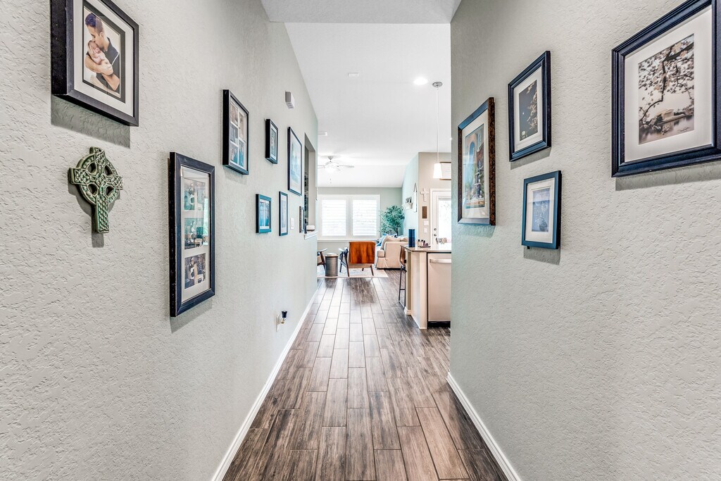 Now available for lease in the beautiful The Crossvine community — welcome to 11820 Bloom Bend! This thoughtfully designed one-story home offers 3 bedrooms, 2 full bathrooms, a dedicated office, and a bonus pocket office just off the kitchen — perfect for working from home or managing daily tasks with ease. Inside, you'll find a bright and functional layout with 9-foot ceilings, durable ceramic wood-look tile in all main areas, and stylish white plantation shutters throughout. The kitchen is a standout with 42” white cabinets, Silestone countertops, a large island with pendant lighting, stainless steel appliances, and gas cooking — ideal for daily living and entertaining alike. The primary suite is tucked away for privacy and features a large walk-in closet, dual vanities, and a separate garden tub and shower. Each room is equipped with ceiling fans, including on the covered back patio that opens to a peaceful view of a neighboring ranch — no immediate back neighbors! Enjoy a shaded front porch with tiled flooring and space for rocking chairs, plus a full irrigation system, water softener loop, and spacious laundry room. Located just steps from Heritage Oaks Park, this home puts walking trails, a pond, basketball court, and a covered playground practically in your backyard. You’ll also enjoy access to resort-style amenities at The Crossvine including a pool, event pavilion, and miles of greenbelt trails. Zoned to top-rated Schertz-Cibolo-Universal City ISD and conveniently located near I-10, I-35, Loop 1604, and Randolph AFB. This home offers both peace and practicality — a rare rental opportunity in a community full of charm.
