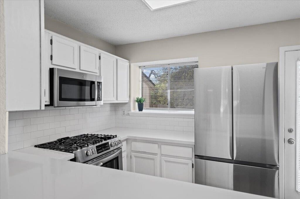 Are you looking for a modern rental with a convenient location and greenbelt access? This is it! 2 bedrooms, 2.5 baths with a renovated kitchen and custom primary bathroom. Lease available asap for 12 months. Stainless steel refrigerator, outdoor grill, outdoor couch and mount for TV convey with lease. Washer and Dryer connections are available inside the unit. 3 dedicated parking spaces. Smart home features include Wifi enabled thermostat, Nest Carbon Monoxide Detector, Ring Doorbell and Patio Camera. Private yard/patio with locked storage. High speed internet available. MLS ID 1738568