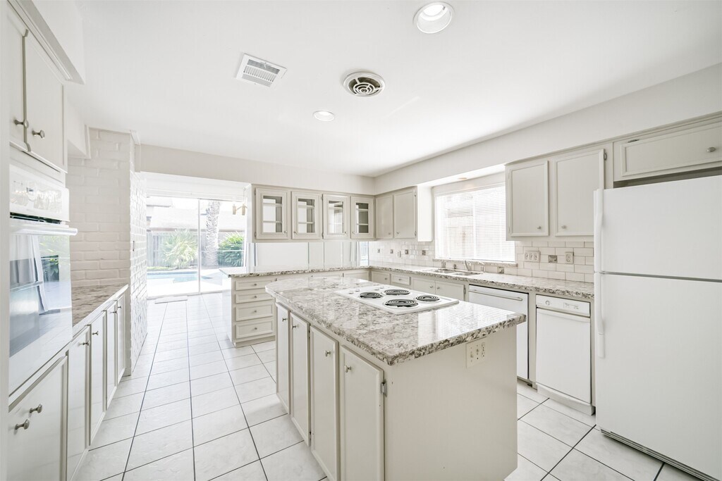 Charming 4 bedroom,2.5 bath with pool in the highly desired area of the Energy Corridor. The island kitchen features granite counters with tile backsplash,tile floors,refrigerator,trash compactor,single electric oven,electric cooktop and plenty of cabinet and counters space. The island kitchen is open to the family room which showcases high ceilings,tile floors,a ceiling fan and views of the backyard through the wall of windows. The spacious primary bedroom has carpet floors,high ceilings,a ceiling fan and built-ins. There are granite counters,tile floors,walk-in closet and a standing shower with tile surround and a sliding glass door in the primary bathroom. All secondary bedrooms are nicely sized and share the second full bathroom which features granite counters,tile floors and a tub+shower duo with tile surround. Refrigerator,washer,dryer and pool maintanance is included! MLS# 57337854