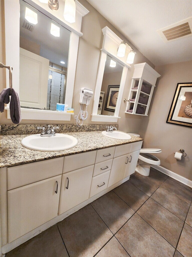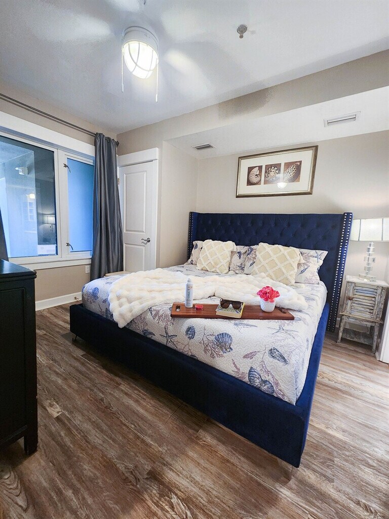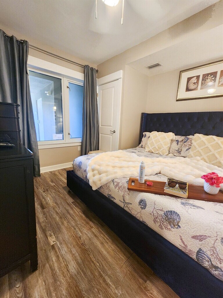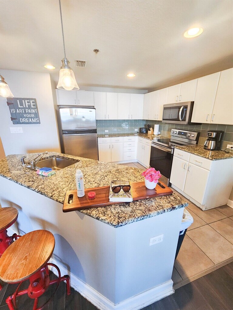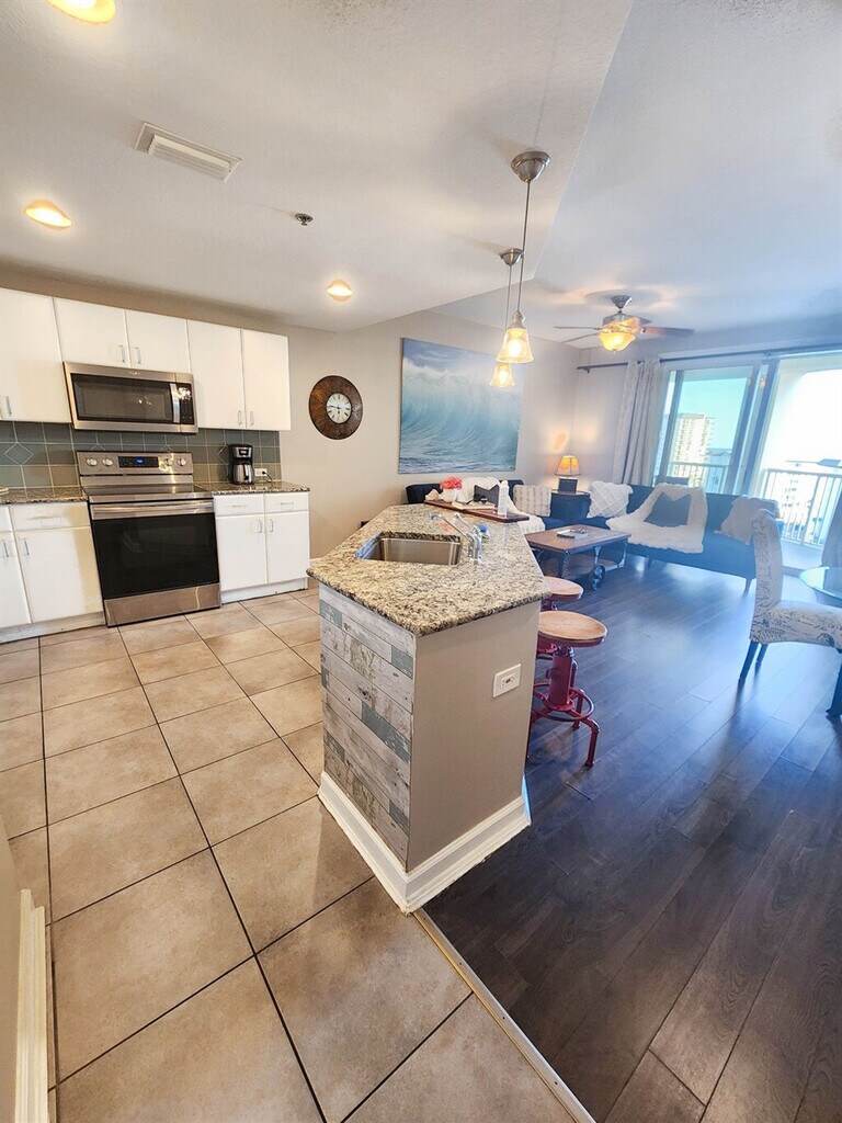 The advertised rate of $8,235/month is the lowest available price, based on a 30 day(s) stay with a move-in date of October 22, 2026. Rates vary depending on the duration of stay, season, and other parameters. For exact pricing and additional pricing components, please visit our website and enter your desired move-in and move-out dates. The rate is applicable when billed upfront; it can be higher if billed in multiple payments. Feel at home in this condo located across the beach on the 2nd floor, offering ocean views visible between the buildings in front. This well-appointed condo is perfect for a relaxing vacation. The kitchen is fully equipped for you to enjoy a home-cooked meal after a long day at the beach. The master bedroom has a king-size bed with a private en suite bathroom and a double sink vanity with upgraded granite countertops. The bunk area is located in the hallway and has its own bathroom. The open living room is spacious and perfectly set-up for everyone to gather and connect during vacation. Amenities include free Wi-Fi, heated pool, two outdoor hot tubs, tiki bar, fitness center with state-of-the-art equipment, in-unit washer and dryer, private balcony with ocean view, linens, towels, toiletries, and cable/satellite TV. Parking is available for up to two vehicles. A $55 flat resort fee includes a pass for one vehicle and wristbands for the guests. A pass for a second vehicle is $35, and motorcycle parking passes are $55. A pet fee of $50 for a 1-7 night stay and $5 for each additional night is payable to the HOA. Grand Panama is one of the best complexes on the beach, and this condo is a 7-10 minute drive from Pier Park. The primary guest must be 21 and present to reserve the place, per the HOA rules. Two dogs up to 25 lb are allowed, but breed and weight restrictions apply; pets on the list of dangerous breeds are banned and include, but are not limited to, pure-or mixed breed Akita, American Pit Bull Terrier, American Staffordshire Terrier, Catahoula Leopard, Chow, Doberman Pinscher, German Shepherd, Husky, Malamute, Pit Bull, Presa Canario, Rottweiler, and Staffordshire Bull Terrier, and Wolf. Proof of vaccination records is required by the HOA. Check-in time is after 4:30 pm; there may be delays on busy days due to long waits at the elevators or traffic. A starter package of paper products and consumables is provided only to last for the first day or so. Registration Number: 23524 [SI]