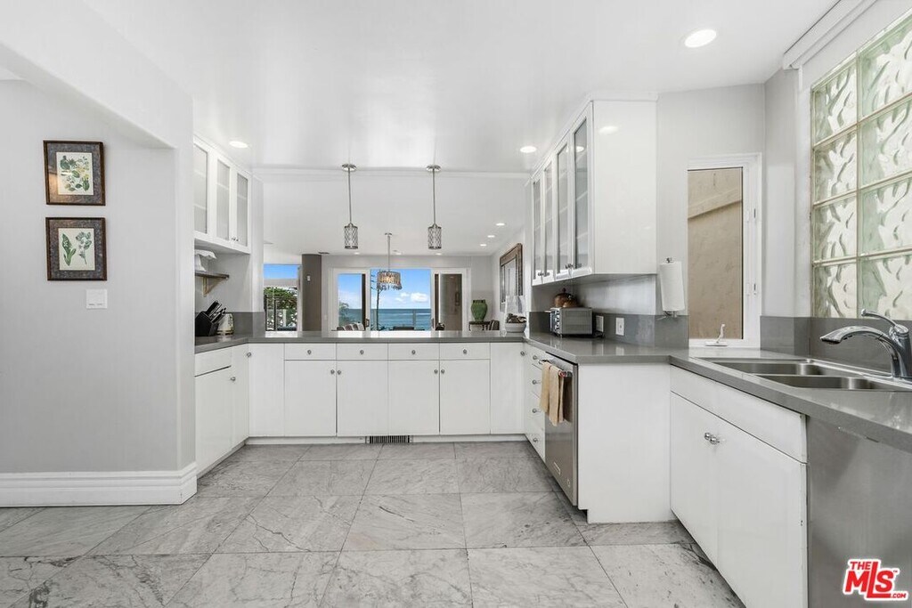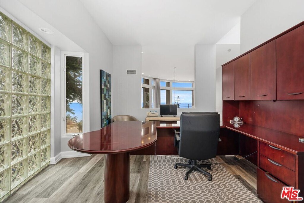Welcome to Maison de la Mer" - Living at the beach doesn't get much more private than here. The property is double gated w/ direct access to a sandy cove, which has no public access. Behind the gated driveway lies ample room for multi-car parking, 2 car garage and large wrap around courtyard. The double wide front door opens to a spacious floorplan w/ foyer, drop down secluded lounge area, living room w/ towering ceiling and large dining area w/ 8 person table. Walls of glass and dual sliding glass doors line the south facing wall that flow out into the backyard area featuring multiple seating options, bbq, flat turf area and unobstructed ocean views. Off to the side is a spiral staircase that leads up to the master suite and rooftop access. The main floor also features a gourmet kitchen, stainless steel appliances and bathroom.Upstairs is the master retreat which is accessed through a secured double door entry. It features a unique floor plan w/ ocean views from every space from the private office, elevated sitting area, master bedroom and bathroom. Through the partially open office a hallway leads to the master suite. Skylights line the vaulted ceiling allowing an abundance of natural light into the home. The master suite features a king size bed, additional sitting area and ocean view balcony w/rooftop access. The open bathroom features a dual vanity, ocean view soaking tub, spa-like walk-in shower and large walk-in closet.Located in west Malibu nearby some iconic amenities such as Neptune's Net, Leo Carillo state beach and the Trancas Country Mart." MLS# 25612605