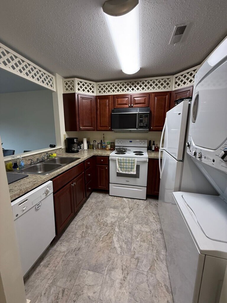 Welcome home to this 2nd floor, 2 bed, 1 bath condo located in Peppertree Condominiums! This unit features large living room/dining area, updated LVP throughout. Appliances included stackable washer/dryer, refrigerator, oven and dishwasher. A $25 monthly water and sewer fee charged to Tenant. Small pet considered, contact Manager prior to viewing with pet details. Available for move in on 5/8/2026!