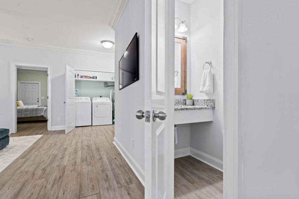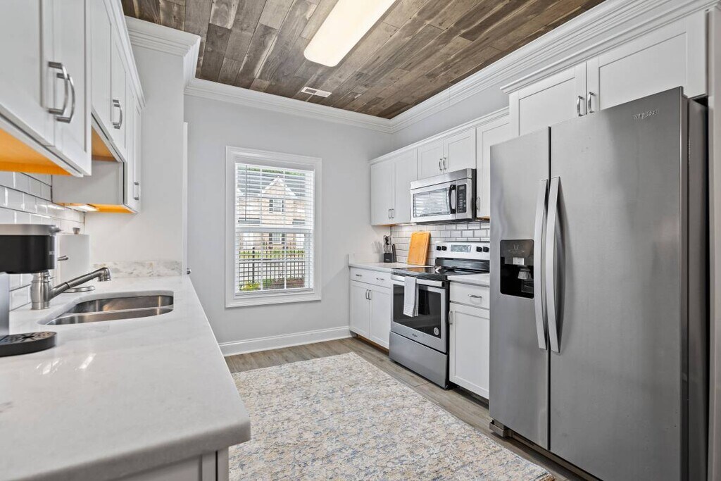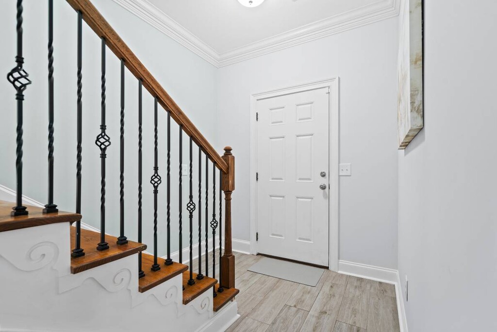 Experience upscale living in this spacious townhome, featuring numerous high-end upgrades. Enjoy granite countertops, stainless steel appliances including a double-sided fridge with ice maker and water dispenser, and hardwood-style tile floors. The kitchen boasts a tile backsplash with under-counter lighting and a charming tin ceiling. The elegant iron staircase leads to a master suite with a double tray ceiling and rope lights. Relax in the luxurious tile shower or garden tub. The master also includes large walk-in closets. The spare bedrooms are generously sized with ample closet space. These townhomes offer exceptional style and comfort in every detail. Appliances Include: Stove, Side-by-Side Fridge, Microwave, Dish Washer and Washer/Dryer