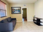 Efficiency as big as an apartment in a single-family house for rent, with private entrance. Living/kitchen area with double cook burners, 1 bath and 1 bedroom. Full size refrigerator, microwave and dishwasher. Unit is partially furnished, has a complete bedroom set, sofa that turns into a bed and TV stand. Washer and Dryer in the unit. One parking assigned. No Pets. No smoking. Tiles and wood veneer floors. Water, electricity and internet/Wi-Fi included.