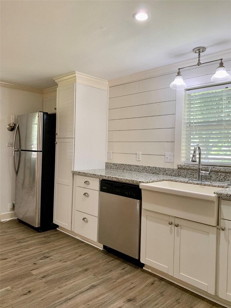 Lovely cottage featuring stove,microwave,dishwasher,hot water heater,unitized washer and dryer and stainless refrigerator. New lifetime vinyl floors. The home is on a corner lot with beautiful mature trees. This cottage also features a large front porch for that morning coffee. MLS# 32709498