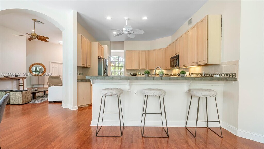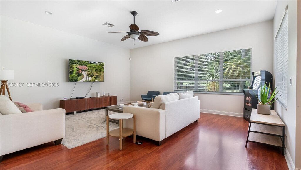You can live in paradise! Completely furnished, this home sits on an acre with plenty of space in the desirable gated community of Bayhill Estates. Perfect house for families! This house has 4 bedrooms/3 bathrooms, volume ceilings and a great split floor plan. Perfectly located on a quiet cul-de-sac with golf views and a spacious driveway with a 3 car garage. The incredible outdoor area is the perfect private Oasis for entertaining with a beautiful large screened pool /spa. Golf through in-community PGA National is available. MLS # A11996127