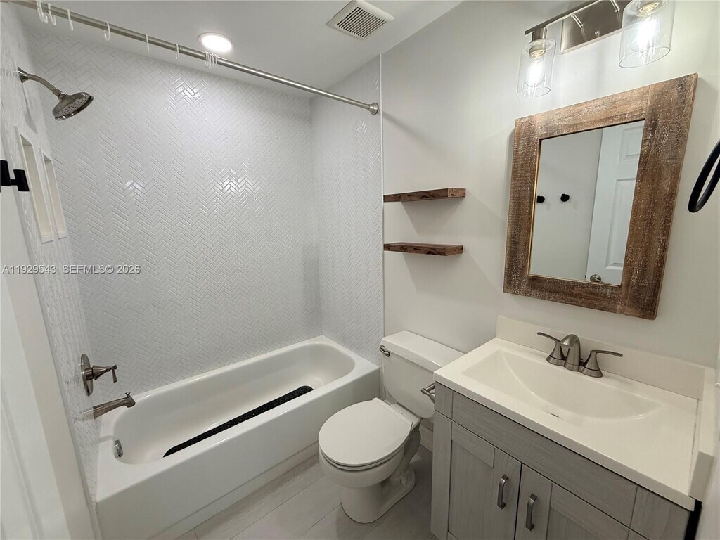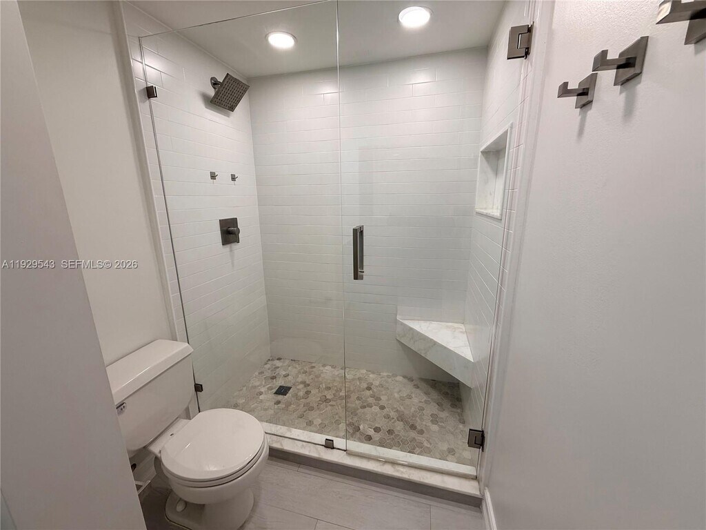 Beautifully updated first floor residence located in a gated community with guard entry, community pool, 1 assigned space and ample guest parking. This light filled home features a stunning modern kitchen with sleek cabinetry, stainless steel appliances, and a quartz waterfall island with designer pendant lighting, opening to spacious living and dining areas. The primary suite offers a large walk in closet and a beautifully renovated bathroom with glass enclosed shower, while the secondary bathroom features updated finishes and a full tub. Enjoy indoor outdoor living with a private screened back patio and a welcoming front courtyard entry. Additional highlights include a separate laundry room and storage room. Water included in the rent, and a well maintained community conveniently located near shopping, dining, A rated schools and major highways. Available for immediate occupancy. MLS # A11929543