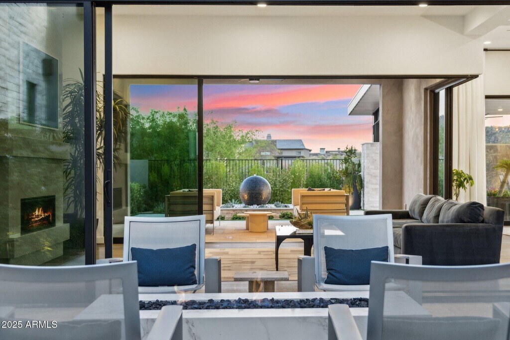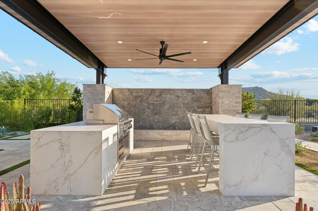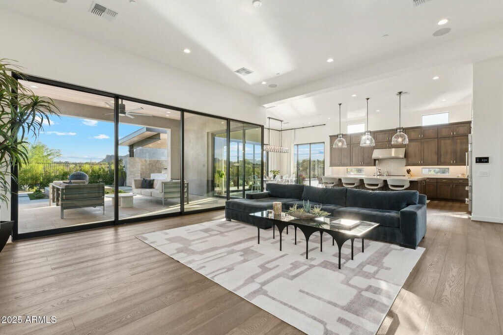 Experience elevated desert living in this newly constructed,sophisticated residence nestled in the heart of North Scottsdale. Showcasing sweeping panoramic mountain views,this exceptional home is designed for seamless indoor-outdoor living and effortless entertaining. The expansive open-concept great room is framed by dramatic walls of glass,flooding the space with natural light and highlighting custom lighting and high-end designer finishes throughout. The chef's kitchen is a true showpiece,featuring premium Wolf appliances,a Sub-Zero refrigerator,an oversized quartz waterfall island,and an additional Bosch refrigerator conveniently located in the garageperfect for extended stays and entertaining. The list price reflects a 1yr lease and includes the home fully furnished. Step outside to your private resort-style oasis. The meticulously designed backyard offers a large heated pool,two stunning infinity-edge spas,a quartz-wrapped outdoor kitchen and BBQ,and an elegant dining area beneath a cantilevered pergola accented by a dramatic waterfall feature wall. Additional amenities include a rooftop observation deck with breathtaking views and an outdoor infrared sauna for ultimate relaxation. Available for year-round living or a luxury short-term stay,this extraordinary home offers the perfect blend of privacy,comfort,and resort-level sophistication.