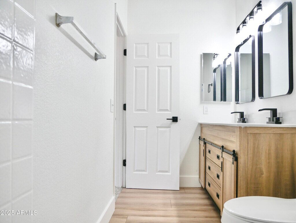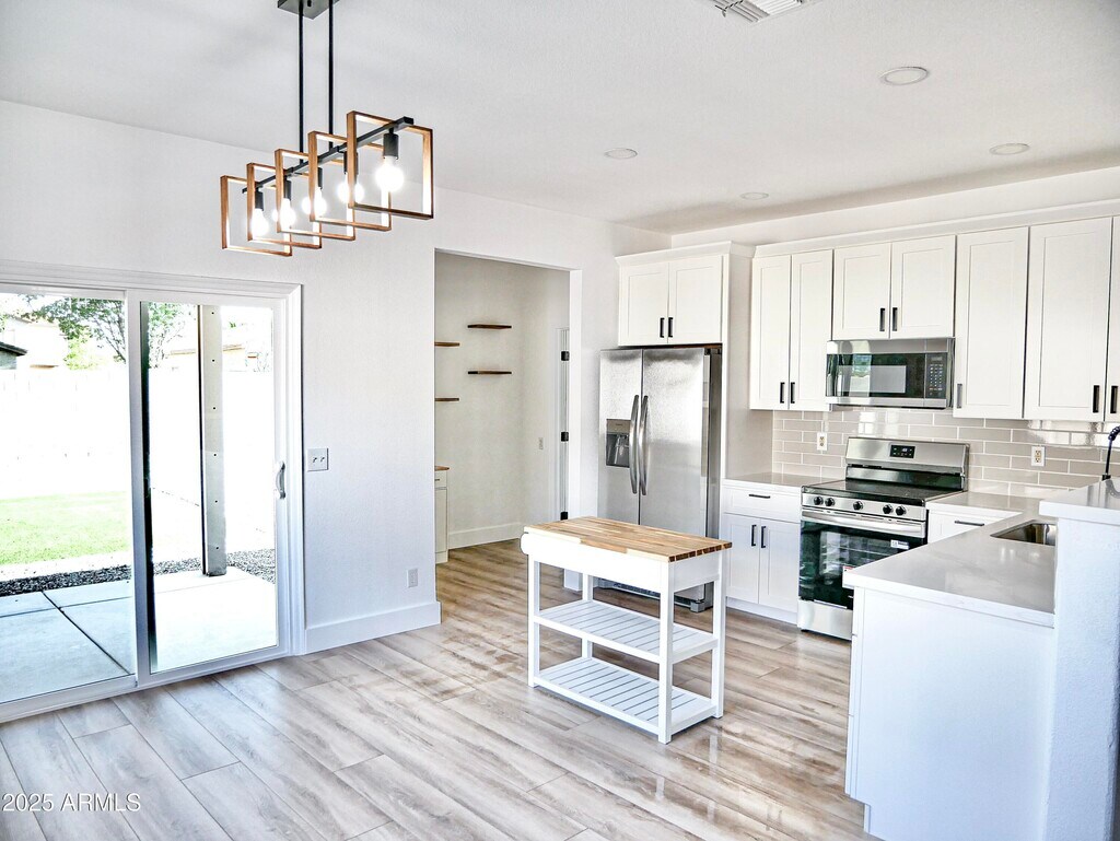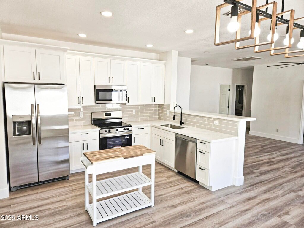 Beautifully remodeled 3 bed,2 bath home with a 2 car garage in Johnson Ranch featuring new vinyl plank flooring,upgraded fixtures,fresh interior/exterior paint,dual pane windows,and a brand-new HVAC system. The kitchen offers quartz counters,white shaker cabinets,a coffee bar nook,stylish backsplash,breakfast bar,and new stainless appliances. The primary suite includes double sinks and a garden tub/shower. Enjoy a low-maintenance backyard with turf plus a side yard for storage. Community amenities include heated pools,tennis and pickleball courts,golf,playgrounds,and walking paths.