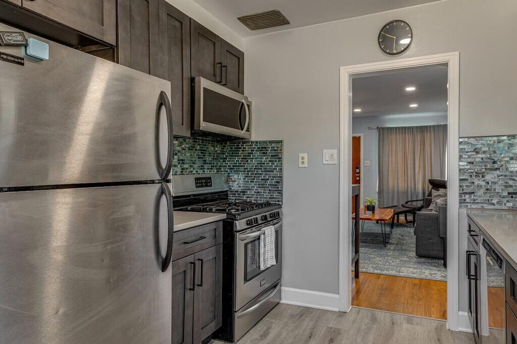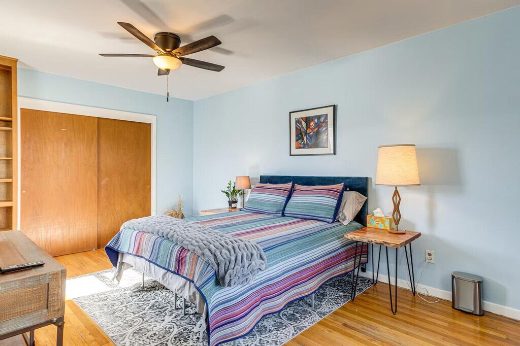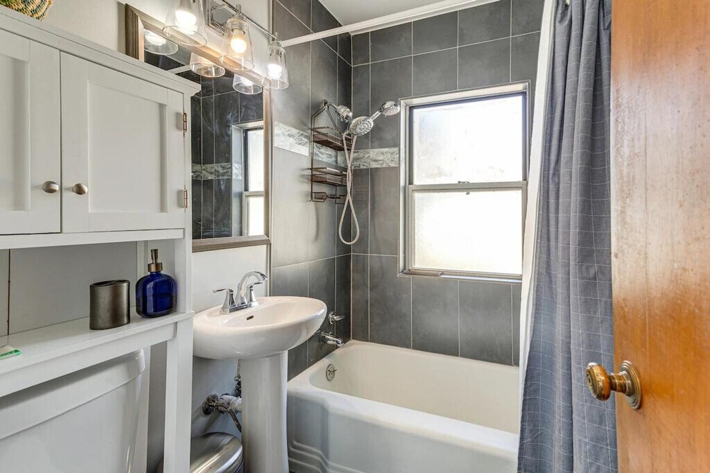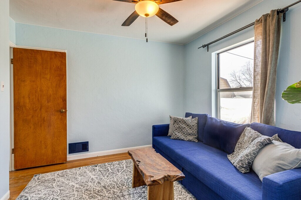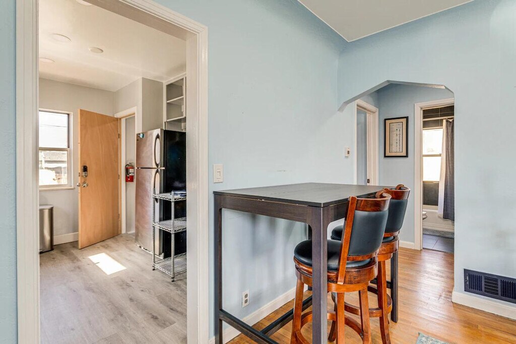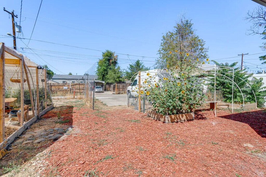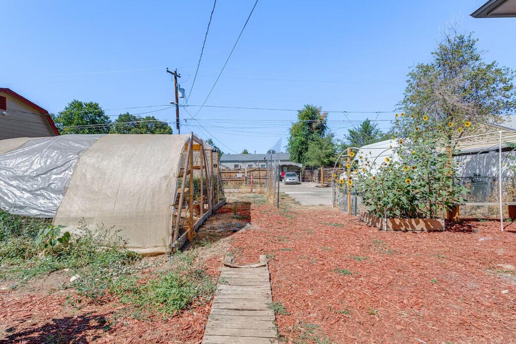 Feel at home in this 2-bedroom, 1-bath Aurora vacation rental, perfect for exploring the Mile High City. This single-story home requires 6 steps to enter. This tranquil home features 2 Smart TVs with cable, a dining bar, ceiling fans, and a private yard with a garden and chicken coop. The full kitchen is equipped with a refrigerator, stove/oven, dishwasher, dishware/flatware, cooking basics, spices, a drip coffee maker, and a microwave. You'll also find free Wi-Fi, central air conditioning and heating, linens/towels, an iron/board, trash bags, a hair dryer, and starter complimentary toiletries, toilet paper and paper towels. Driveway parking is available for 2 vehicles, with street parking available on a first-come, first-served basis. Shop and sightsee through downtown Aurora, tee off at Aurora Hills Golf Course, or cheer on the Colorado Rockies at Coors Field. For music fanatics, catch a show at Red Rocks Park & Amphitheatre. Quiet hours are observed from 11:00 PM to 7:00 AM. The homeowner lives on-site in the next-door property with a separate entrance and has an office in the basement unit of this property. An exterior security camera is located on the homeowner’s next-door property facing toward the front entry area of the rental. The property provides a starter amount of toiletries, paper towels, and toilet paper. No pets are allowed. No events, parties, or large gatherings are permitted. Registration Number: S20 [SI]