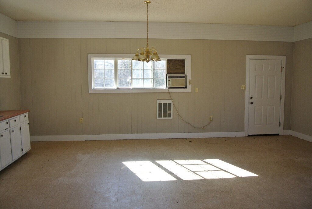 2br/1ba unit with open Floor Plan. Perfect for In-Laws when also Renting 1165 First St Ext or small Family. Base Board Electric Heat . Small Kitchen/ Den Combination. Water supplied from 1165 First St Ext. Septic tank on site. No Appliances. Window AC unit provided by owner but not warranty by owner. No Washer/Dryer Connections. NO PETS. Must have at Least a 600 Credit Score, Gross monthly income of 3.5 times the rent. Directions: Take 64 West towards Nashville. Take Exit 461 toward Red Oak. Turn Right onto State Rt 1003, Turn Left onto First St Extension. House on Left side Schools: Nashville Elem, Red Oak Midd, Northern Nash Info: Call office at and ask for Richard Sykes