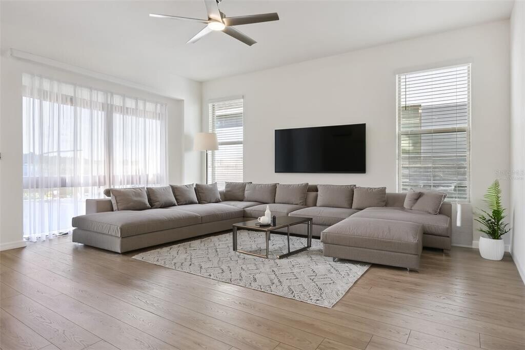 One or more photo(s) has been virtually staged. Stunning 4-bedroom,3.5-bath new construction home in Waterleigh featuring an oversized,fully fenced corner lot. Landscaping and pest control included in rent. This spacious two story floor plan features an open kitchen with quartz countertops,stainless steel appliances,large island with pendant lighting,and walk in pantry. The main level offers a private bedroom with en-suite bathroom and bright great room leading to the covered lanai with ceiling fan and light. Screened-in lanai installation is forthcoming. Upstairs includes a generous loft,well appointed primary suite,and two additional bedrooms. Upgrades throughout include seven ceiling fans with lights,upgraded chandeliers,enhanced bathroom fixtures,upgraded shower heads,Smart home features include an IQ panel,keyless front door lock,front doorbell camera,five smart lights,interior garage camera,and remote thermostat control. Community amenities include resort-style swimming pools,fitness centers,ball room,multi purpose field,multiple play structures,water play area,covered pavilion,BBQ areas and walking trails. This property is in a prime Horizon West location near Hamlin,top rated schools,and major attractions. Call for your private showing today. MLS# O6381325