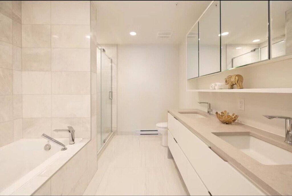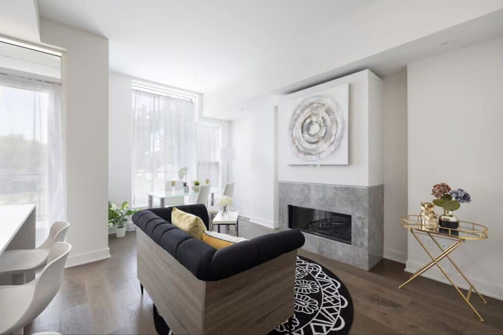 Experience upscale living and feel at home in this stunning two-level condo at Tour des Canadiens 2. This bright, modern condo offers the comfort and privacy of a townhouse with direct street access and a private terrace. This fully furnished and equipped condo features a fully equipped kitchen with a gas cooktop, built-in fridge, dishwasher, and quartz countertops. Enjoy the elegant living room with a smart TV and high-speed Wi-Fi, as well as the convenience of an in-unit washer and dryer. Central air conditioning and heating are included. One indoor parking space is included. Situated in the heart of Montreal, this condo is connected to the Bell Centre, the REM, and Lucien-L’Allier metro. Walk to cafés, restaurants, shops, and entertainment venues in minutes. Enjoy easy access to the underground city, Old Montreal, and Griffintown. Smoking and parties are not permitted in the unit; violating this rule will result in a $500 penalty and immediate expulsion without refund. Pets are not allowed. Includes a closed office, ideal for remote work. Guests will have full access to the pool, gym, and building facilities. A minimum 30-day stay is required. All utilities are included (Wi-Fi, hydro, heating, A/C). [SI]