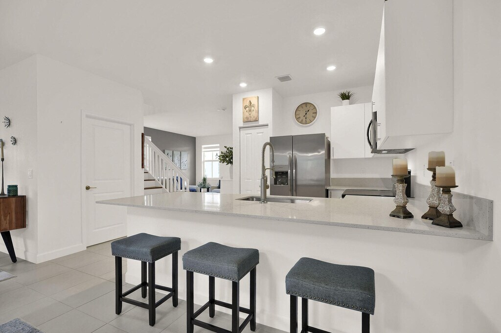 Virtual tour = Real video! Welcome to gated newer-construction Sunset Trails! This corner unit offers a bright,open,& modern layout. The kitchen features white cabinetry,quartz countertops,stainless steel appliances,a breakfast bar,& a pantry! Immaculately kept! Owners completed numerous upgrades beyond the basic builder package,including real wood stairs and landing,upgraded light fixtures,enhanced kitchen and bath hardware,and zebra blinds throughout. The spacious primary suite includes a walk-in closet plus an additional wall closet. Enjoy a private fenced backyard with patio. Community amenities include a pool,spa,playground,and gated entry. Impact windows and doors provide peace of mind,lower insurance costs,and energy efficiency. Won't last! MLS ID B26009245