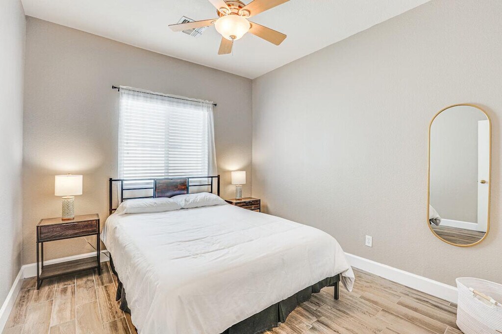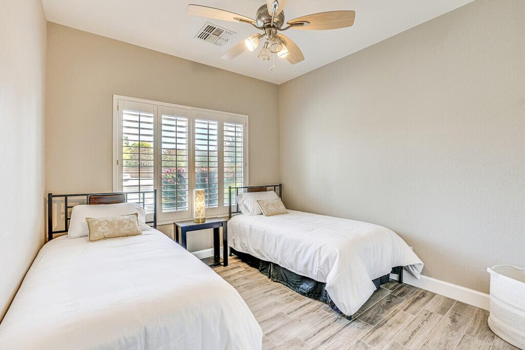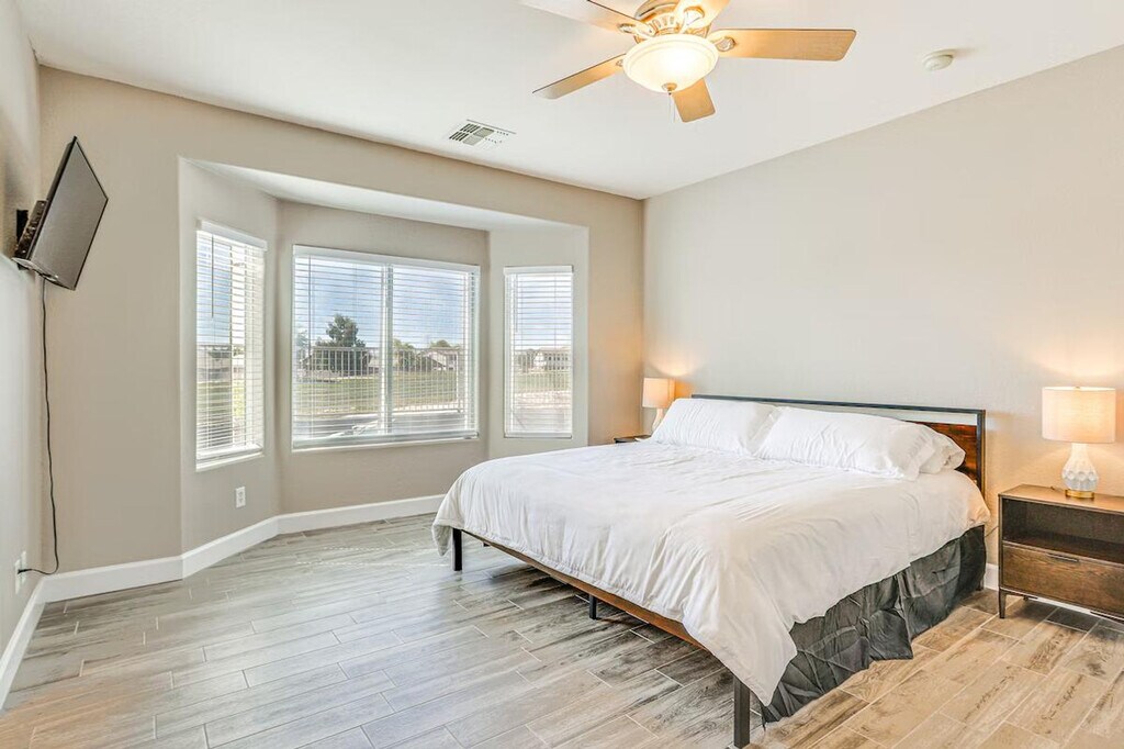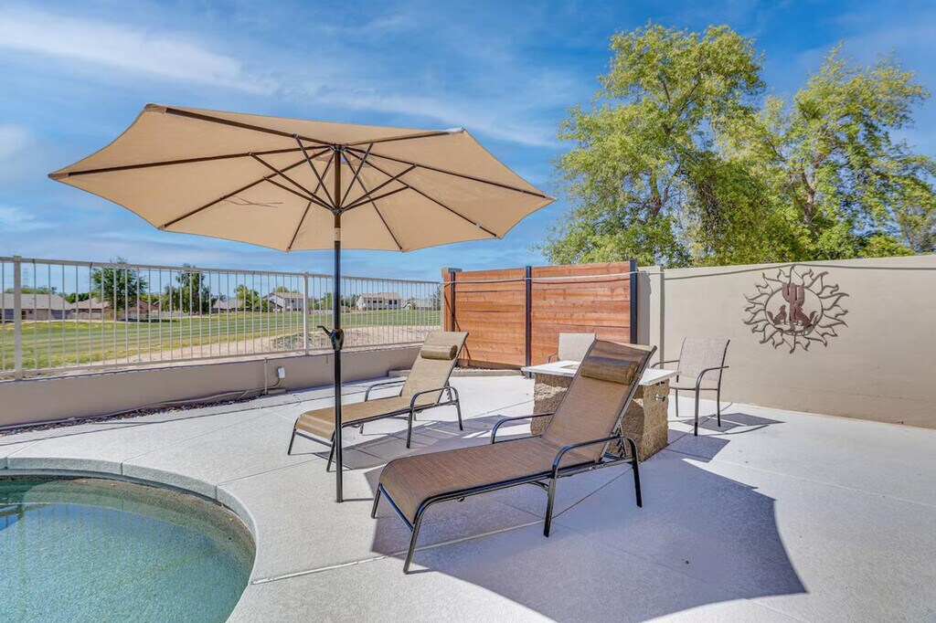 The advertised rate of $3,729/month is the lowest available price, based on a 30 day(s) stay with a move-in date of July 20, 2026. Rates vary depending on the duration of stay, season, and other parameters. For exact pricing and additional pricing components, please visit our website and enter your desired move-in and move-out dates. The rate is applicable when billed upfront; it can be higher if billed in multiple payments. Discover your desert oasis and feel at home in this stunning single-story 3-bedroom, 2-bathroom house in Avondale, AZ, which requires one step to enter. This beautiful house features a smart TV with Roku, central heating and A/C, a fire pit, a furnished patio, and outdoor lounge chairs. The kitchen is equipped with a fridge, stove, dishwasher, Keurig (coffee pods provided), microwave, cooking basics, toaster, dishware/flatware, trash bags, and paper towels. Other amenities include free Wi-Fi, keyless entry, complimentary toiletries, linens/towels, a washer/dryer, ceiling fans, a hair dryer, and an iron/board. Enjoy the private outdoor pool (3'-6' Depth) and a golf course view. Driveway parking is available for 3 vehicles. A short drive will lead you to attractions like the Phoenix Raceway and Westgate Entertainment District. No smoking, pets, events, parties, or large gatherings are allowed. Your safety matters. This property features 4 external security cameras: 1 Ring doorbell camera located by the front door facing the front entry, 1 camera located by the side gate facing the side yard, 1 camera located on the back of the home facing the pool area, and 1 camera located on the front of the home facing the driveway. The cameras are outward facing and do not look into interior spaces. The cameras record video and sound when activated by motion. [SI]
