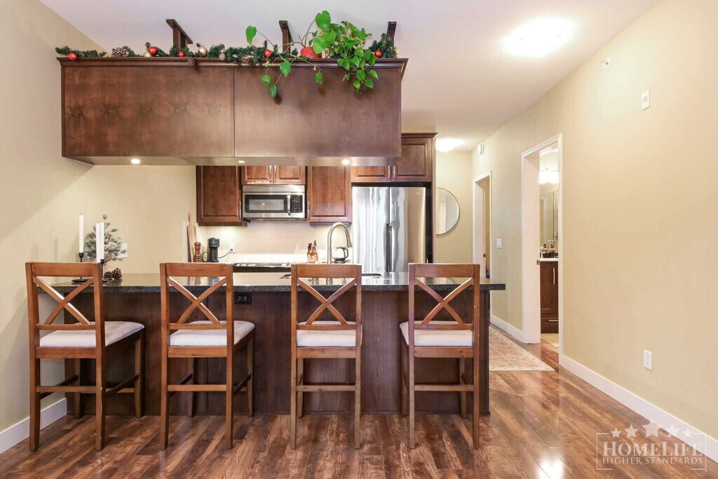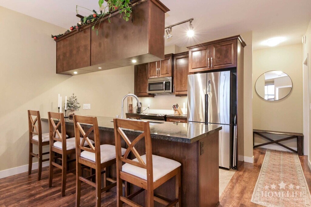 Exceptional Condo Living in the Heart of Maple Ridge — 1 Bed Plus Den / 1 Bath Corner Unit at Wellington Station Welcome to Wellington Station, a contemporary and well-appointed residential building located at 11887 Burnett Street in the vibrant centre of Maple Ridge. This development offers modern urban living with a perfect blend of convenience and comfort. Residents enjoy a walkable location with easy access to shopping, transit, recreational amenities, dining, and green spaces — all within minutes of the building. Whether you’re commuting, entertaining, or relaxing, this location brings the best of Maple Ridge to your doorstep. It is a short walk to shopping, groceries, restaurants, parks, transit, and essential services — delivering a true “live-work-play” experience in Maple Ridge. Building Amenities: Exercise centreBike storageFull strata-managed maintenancePets allowed (with restrictions)Location AmenitiesSchools:Golden Ears Elementary School — close-by catchment school.Thomas Haney Secondary School — within walking distance. St. Patrick's School — independent K–7 schooling nearby. Meadowridge School — independent K–12 option within a few kilometres. Meadow Montessori School — independent elementary option a short drive/commute away. Shopping & Groceries:Haney Place Mall — major indoor shopping centre anchored by Walmart, Thrifty Foods (and other retailers/services). Valley Fair Mall — another central retail hub offering a wide range of stores and services. Independent grocers & markets including Langley Farm Market and other local specialty food stores & produce suppliers.Dining, Cafés & Restaurants:A variety of local and chain restaurants, cafés, and casual eateries in Downtown Maple Ridge and town-centre area — suitable for all tastes. For fresh, local produce and artisanal goods — the Haney Farmers Market (held seasonally in Memorial Peace Park) offers a community feel with vendors, local food and crafts.Recreation & Parks:Kanaka Creek Regional Park — natural green space offering trails and creek-side scenery, ideal for walking, hiking, or relaxing. Maple Ridge Leisure Centre — local community centre with pool, fitness and recreational programming.Downtown cultural amenities including The ACT Arts Centre for theatre, arts and community events. Healthcare & Services:Ridge Meadows Hospital — main acute-care hospital in Maple Ridge, offering convenient access to health services.Transit access via Haney Place Exchange — major bus exchange connecting Maple Ridge to surrounding municipalities and Metro Vancouver.This listing offers an exceptional opportunity to live in a well-maintained, modern building in the heart of Maple Ridge — with everything you need within walking distance. This spacious 1-bedroom plus Den, 1-bathroom corner unit delivers bright, open-concept living across 851 sq ft. The home is designed for comfort and style, featuring: in-unit laundry (washer/dryer), central air conditioning, and a modern kitchen equipped with stainless steel appliances, granite countertops, and ample cabinet/pantry storage. Natural light floods the unit from multiple angles, and the layout affords privacy by placing the bedrooms on opposite sides. With a functional, user-friendly floor plan and thoughtful finishes, this unit is ideal for professionals, couples, or small families seeking quality and convenience. Unit Features: Central air conditioningIn-unit laundryModern kitchen with stainless appliances & granite countertops, open-plan living/dining areaCorner-unit with an abundance of natural light. Please Note:1 Year Lease Term2M Renters Insurance RequiredNo SmokingCredit Check & Income Verification RequiredSmall Pets Allowed