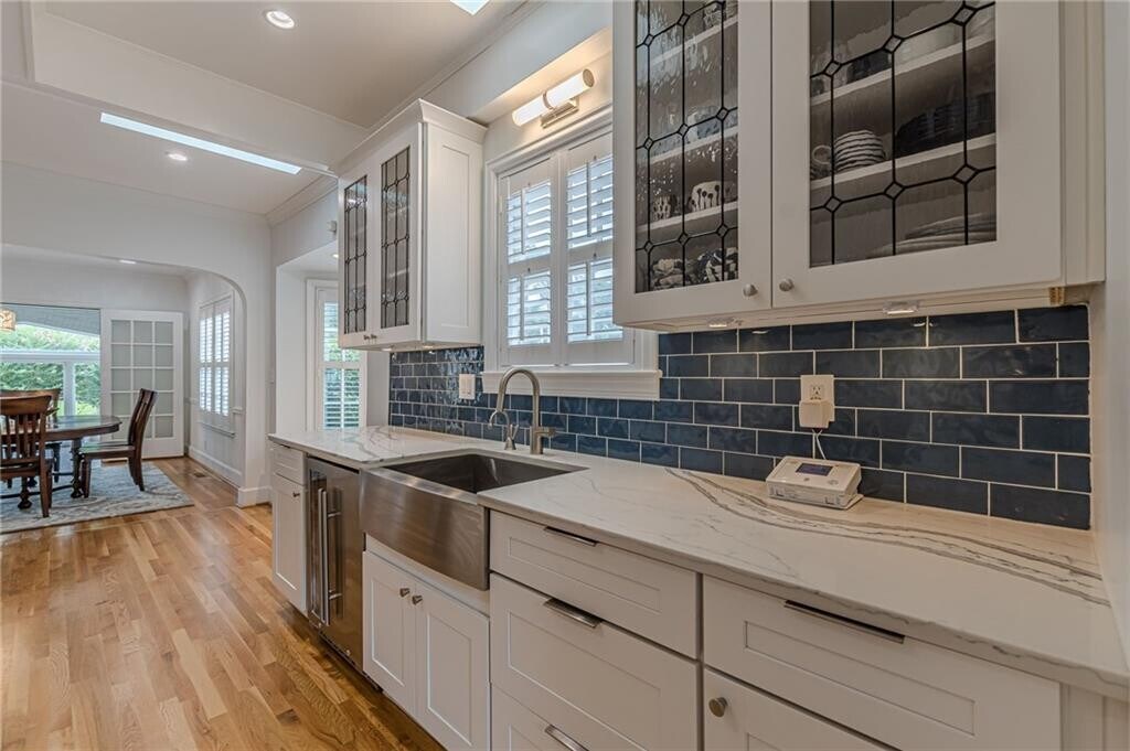 Nestled on a corner lot in this pristine very desirable Morningside neighborhood,follow the cobblestone pathway to this elegant traditional 4-sided brick renovated home with TONS of curb appeal! Enter the BLUE door and you are immediately captivated by the beautiful satin finished original hardwood floors that begin in the formal living,then flow into the large dining room with French doors that access the airconditioned sunroom. The hardwood floors continue into the AMAZING kitchen,extending into the light-filled family room that overlooks the large deck & private back yard,and then the wood floors cascade through the hallway,and into 2 bedrooms,one with an ensuite bath,while the other bedroom has access to a renovated full bath,all located on the main level. The lite color palette of the walls,ceilings,doors,and trim makes the home feel bright and invites in the natural light. Adding to the abundance of character of this classic home is the functional marble surround fireplace in the living room. The eat-in kitchen is OUTSTANDING with beautiful solid-wood cabinets showcasing leaded glass doors,quartz countertops,a great center island,and SS appliances that include a double-sided refrigerator,2 full-size sinks,a wine refrigerator,a convection microwave + wall oven,plus a gas range with hood. You can exit the kitchen via the mud room that leads to the EXPANSIVE rear deck for true al fresco entertainment,plus the deck steps out to a fire pit,a wall of beautiful trees,and a low maintenance FULLY FENCED back yard… this home was designed to take advantage of indoor/outdoor living at its BEST. The hardwood floors continue up the stairs and throughout the 2nd level that is exclusively dedicated to the Primary Suite to pampers the owners. The Primary Suite also features a vaulted ceiling sunroom that overlooks the lovely back yard,Primary Bath with double vanity,separate shower,and soaker tub,HUGE walk-in closet with custom shelving,also equipped with its own laundry room with full-size washer/dryer,plus a bonus area that can be used as a seating area or office space. WAIT,THERE’S MORE... the lower-level walkout basement has a finished flex/KIDS/exercise space with terracotta floors,stunning stone walls,large concrete sink with exposed copper pipes,a beverage cooler,a separate storage area,a dedicated HVAC system,plus a full bathroom. There is also a 2nd set of washer/dryer to service the lower & main levels. The spacious 2-car detached garage with ample storage is accessed from the back yard. Included Services: LAWN MAINTENANCE,PEST,TERMITE,MOSQUITO,WILDLIFE.