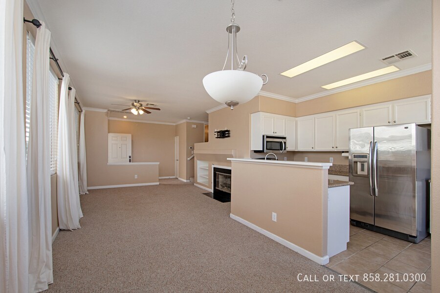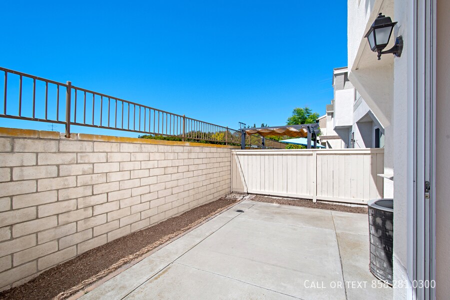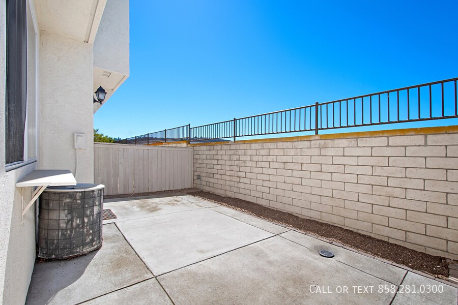 Spacious, light & bright townhome with views! Situated in the popular Scripps Ranch Triana community this conveniently located home is just steps away from the highly rated Dingeman Elementary School and not much further to parks and fabulous shops and restaurants at Scripps Ranch Marketplace. Well maintained and updated with granite kitchen countertops, stainless appliances and updated fixtures. The bright kitchen overlooks the living room and dining area. Master bedroom is on opposite end of the unit, creating privacy and separation from hallway bedrooms. Master includes walk-in closet and beautiful views of Spring Canyon Park with no rear neighbors. Private outdoor patio space perfect for entertaining. Unit includes central air conditioning & heating, 2-car attached garage and in-unit laundry (appliances included). Pets considered with additional deposit. Community amenities include on-site guest parking, swimming pool, hot-tub, and more. Must see!