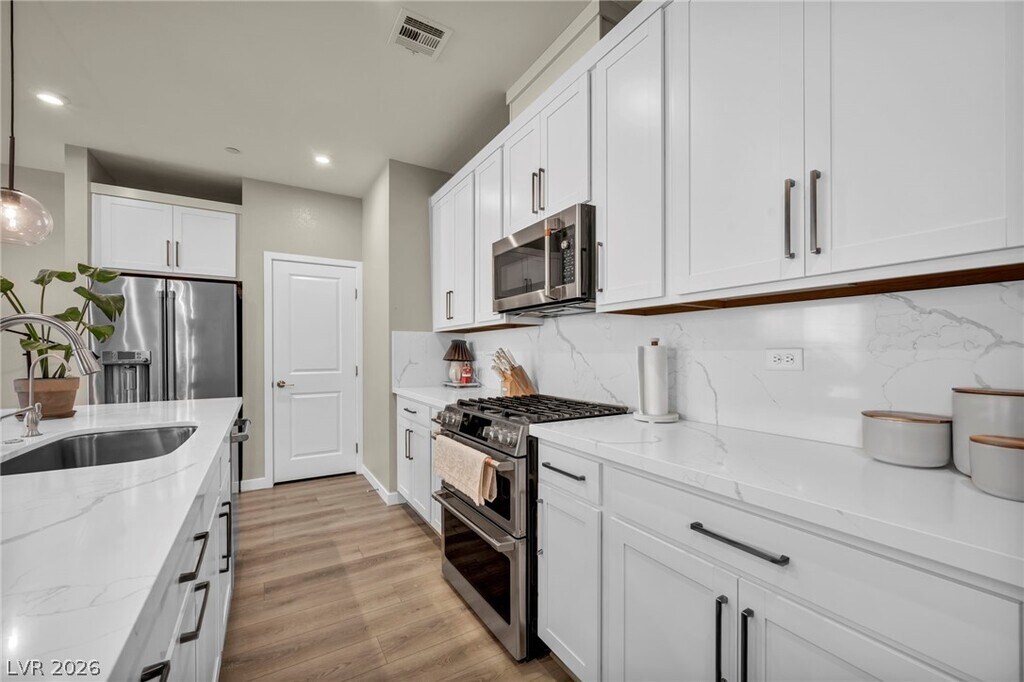 Welcome to modern living in the heart of Summerlin West just minutes from parks, trails, shopping, dining, and top- rated schools! Built in 2024, this beautifully designed townhome offers step inside to an open-concept floor plan featuring a bright and airy living area that flows seamlessly into the kitchen and dining space—perfect for both everyday living and entertaining. The contemporary kitchen showcases sleek finishes, ample cabinetry, and a functional layout designed for today’s lifestyle. Upstairs, you’ll find two spacious bedrooms, each offering comfort and privacy and en suite well-appointed bathrooms. The primary suite provides a relaxing retreat with generous closet space & serene balcony to greet each day. Spacious loft ensure you can have an open office space or secondary family or game room.