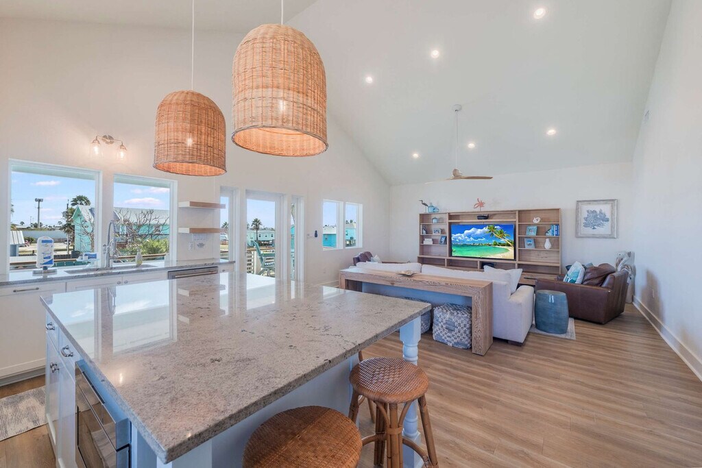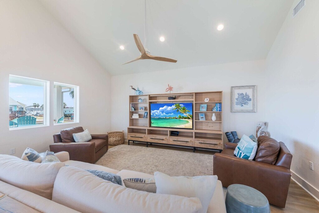 Feel at home in this 3-bedroom luxury home in a prime location in Port Aransas, TX. This spacious home features 3 comfortable bedrooms and 3 modern bathrooms, making it ideal for families, friends, or groups seeking a relaxing beach getaway. With room to sleep up to 10 guests, everyone will have space to unwind, recharge, and enjoy the stunning coastal vibes. Inside, you’ll find a bright and inviting living area designed for both comfort and connection. The open-concept layout connects the living room, dining area, and fully equipped kitchen perfect for cooking meals together, hosting game nights, or simply lounging after a day on the beach. Each bedroom is thoughtfully furnished to ensure a restful night’s sleep, while the bathrooms are clean, modern, and stocked with essentials for a hassle-free stay. A standout feature guests absolutely love is the giant synthetic-turf backyard private, spacious, and perfect for family and friend gathering, yard games, or soaking up the sun. It’s one of the home’s most memorable highlights and the ideal spot for morning coffee, evening cocktails, or a relaxed barbecue with friends and family catching sports or a movie on the outdoor 65" smart tv. The kitchen is fully stocked with high-end appliances, ample cabinetry and pantry, a large island with high seating, and a Keurig coffee maker. The living room features a smart TV, a large plush sofa, and leather accent chairs. Outside, you’ll also enjoy ample parking for up to 5 cars, including a dedicated EV charger for convenient charging during your stay. For added comfort and convenience, the home features an ice maker, perfect for filling coolers or stocking up for beach days. Enjoy the private pool with a pool basketball hoop, a hot tub for $125 per night, a gas grill, an outdoor shower, hanging chairs, pool loungers, and a beach cart. Located in the center of Old Town Port A, this home offers quick access to the beach just minutes away by car or golf cart local dining, shops, and attractions, while still providing a private and peaceful retreat to call your own. The neighborhood offers the perfect combination of quiet streets, friendly locals, and easy access to some of Texas’ most beautiful beaches. Beach lovers will delight in being just steps or a short drive away from Port Aransas Beach, perfect for swimming, sunbathing, beachcombing, or trying out exciting water sports like surfing, paddleboarding, and kiteboarding. Fishing enthusiasts will enjoy the nearby piers and boat rentals, while nature lovers can explore the surrounding dunes, birdwatching spots, and local wildlife preserves. Quaint cafés, seafood restaurants, and casual eateries are scattered nearby, offering fresh local flavors and a taste of island life. Boutique shops, art galleries, and local markets provide unique finds for souvenirs or a leisurely shopping day. Roberts Point Park is approximately 0.5 miles away, Leonabelle Turnbull Birding Center is approximately 1.1 miles away, and Red Dragon Pirate Cruises is approximately 0.4 miles away. Check-in is at 4pm and check-out is at 10am. Dogs are not allowed in the property. No parties are allowed violations may result in immediate termination of the stay. Guests must be 25 years or older to book this property. Registration Number: 593039 [SI]