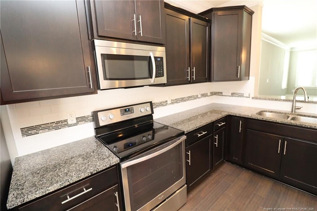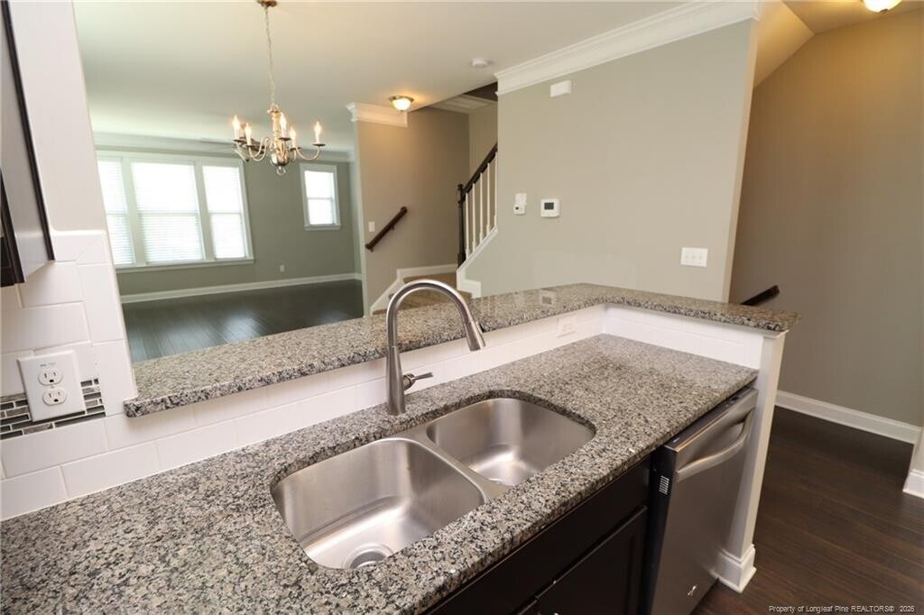 This fantastic and immaculate, end-unit townhome is located in Cary Park; one of our west Cary's most sought-after neighborhoods! 119 Ballyliffen Lane is available immediately and sure to please the most discerning of resident.The foyer opens on the right to a first floor bedroom with double windows, durable luxury plank floors, a spacious closet and direct access to the first of four full bathrooms this home offers. Heading down the hallway, you'll next find a laundry room with a washer and dryer provided for resident's use. At the end of the hallway is a sprawling bedroom that offers double windows, a closet, luxury plank floors, and an en-suite bathroom with a walk-in shower as well as a marble-topped and elevated vanity with dual sinks. Heading up to the second floor you'll enter a massive, open-concept living space. The design of the second floor allows it to live large and it's simply perfect for today's lifestyle. A chef's kitchen is found at the rearmost area and it showcases gorgeous granite countertops, a granite-topped island with a breakfast bar, staggered oak upper and lower cabinetry with crown molding, a suite of sleek, stainless-steel appliances, as well as direct access to an elevated rear balcony overlooking a serene, wooded buffer. On the other side of the kitchen, you'll next enter a perfectly-proportioned dining area that serves to seamlessly interconnect the kitchen with the adjacent family room. The family room was carefully designed with easy furniture placement in mind and also showcases triple picture windows, a ceiling fan and hardwood floors that extend out throughout the entire length of the second level of this home. 119 Ballyliffen Lane continues to impress on the top floor where you'll find bedrooms #3 and #4. Bedroom #3 includes double windows, a double wall closet and direct access to an en-suite bathroom a marble-topped vanity and a tub/shower. The grand finale is surely the luxurious primary suite that features triple picture windows, two walk in closets and a private bathroom with a linen closet, a fully-tiled, walk-in shower with a glass enclosure and dual sinks on a marble-topped, elevated vanity.