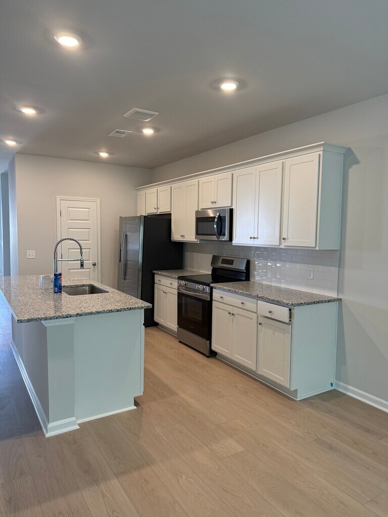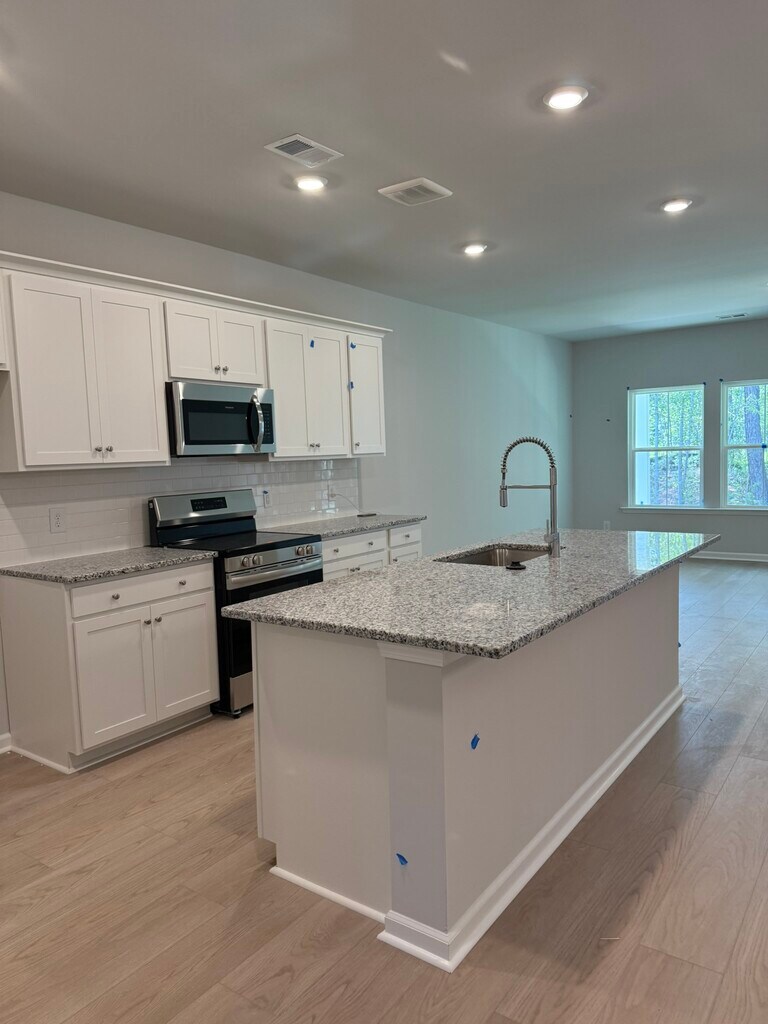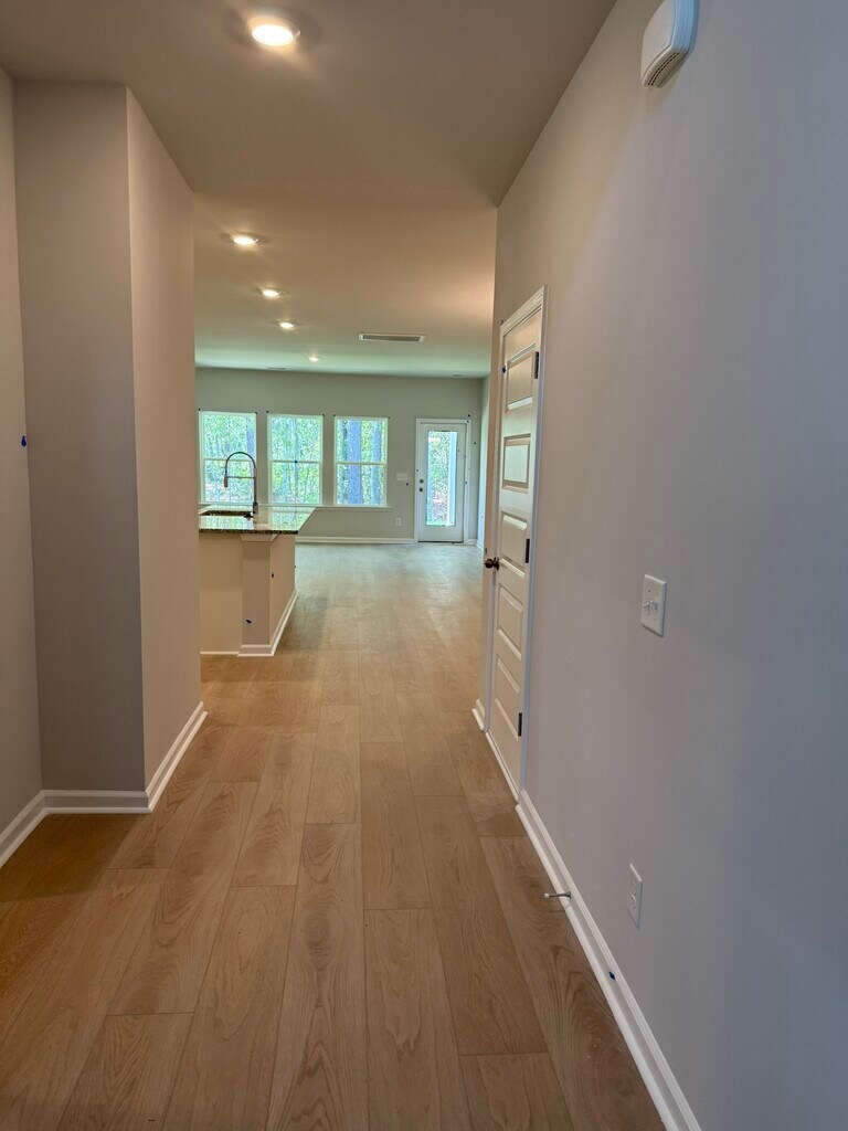Welcome to Your Brand-New Home! Experience the perfect blend of modern luxury and serene privacy in this brand-new home. Located in a peaceful neighborhood, this house offers everything you need for comfortable living and entertaining. As you step inside, you'll be greeted by an elegant entryway with soaring ceilings. The spacious, open-concept kitchen is a chef's dream, featuring stainless steel appliances, granite countertops, and a large center island perfect for meal prep or casual dining. The oversized owner's suite is conveniently located on the first floor and provides a private retreat with its own en-suite bathroom and two walk-in closets. The first floor also opens to a huge covered back porch, ideal for hosting gatherings or simply relaxing outdoors. For added privacy, a gentle hill to the side of the house creates a natural barrier. Upstairs, a versatile loft area awaits, surrounded by four spacious bedrooms and two full bathrooms, providing plenty of space for family or guests. All five bedrooms, the living room, and the loft are equipped with remote-controlled ceiling fans with LED lights for your comfort and convenience. This home also includes a 2-car garage, fast speed Internet, and a new washer and dryer for your use. Convenience is key with this home's prime location. You'll be just minutes from I-16, Costco, and Pooler Shopping Center, and within walking distance to New Hampstead schools.