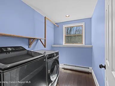 Enjoy serene country living in this beautifully maintained 3-bedroom, 2.5-bath home with versatile spaces for work, hobbies, and entertaining. A circular driveway leads to a spacious mudroom, oversized heated 2-car garage, and fully fenced backyard with a greenhouse and raised garden beds perfect for pets and outdoor fun. The updated kitchen features stainless steel appliances, stone countertops, and a tiled backsplash. Relax in the living room with a wood-burning fireplace and pellet stove, or dine overlooking lush grounds. The main-level primary suite offers privacy and an updated en-suite, while two additional bedrooms share a full bath. Additional rooms include a den with yard access. Recent upgrades include six mini-splits for year-round comfort, a level-two EV charger, and a new roof. Conveniently located near Mohonk Preserve, local farms and orchards, and charming towns like Woodstock, Stone Ridge, and New Paltz all under two hours from NYC. Pet-friendly. Flexible lease. Available immediately.