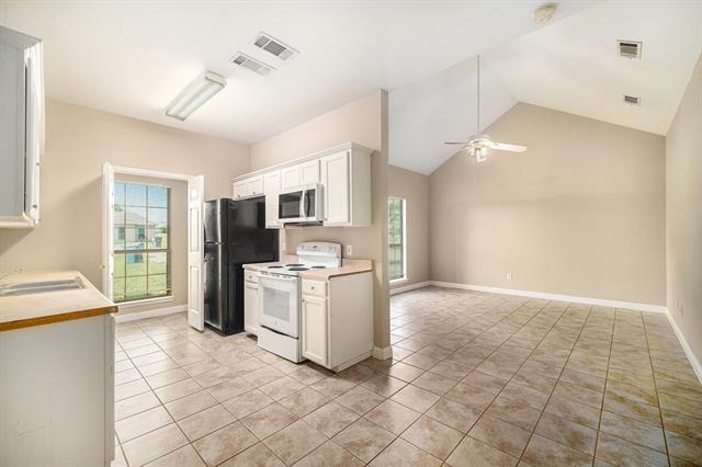 Beautifully Crafted 3 bed 2 bath duplex located in Weatherford, Tx. The 3 bed 2 bath rental property is a spacious and comfortable home that can accommodate multiple people. It has three bedrooms, two bathrooms, a living room, kitchen, parking, and outdoor space. Home has tile flooring throughout the home with carpet in the bedroom.