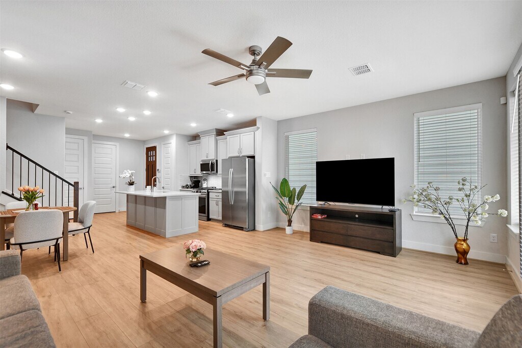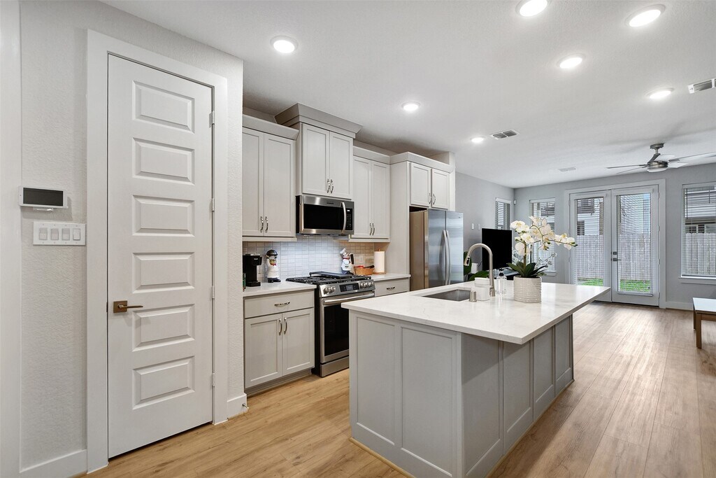 Modern and stylish townhome available for lease on March 25th! This beautifully designed 3-bedroom,2.5-bath residence offers open-concept living with high ceilings,abundant natural light,and sleek contemporary finishes throughout. The kitchen features omega stone countertops,stainless steel appliances,custom cabinetry,and a large island—perfect for everyday living or entertaining. Refrigerator,washer,and dryer are included in the lease for added convenience. Upstairs,the spacious primary suite includes a luxurious ensuite bathroom with a large walk-in shower,double vanities,and a generous closet. Two additional bedrooms provide flexibility for guests,roommates,or a home office. Enjoy a private backyard with space for grilling and relaxing! Conveniently located near major freeways,downtown Houston,The Heights,and some of the city’s best dining and shopping. This home offers modern comfort,convenience,and a prime location—schedule your showing today! MLS# 69235802
