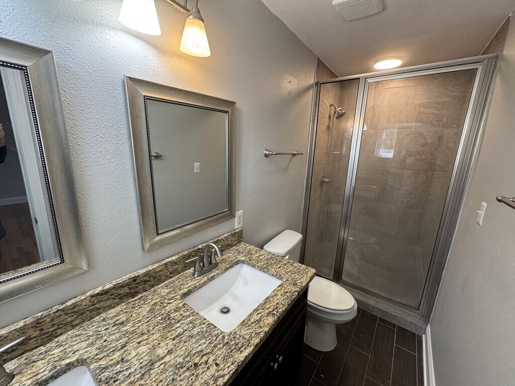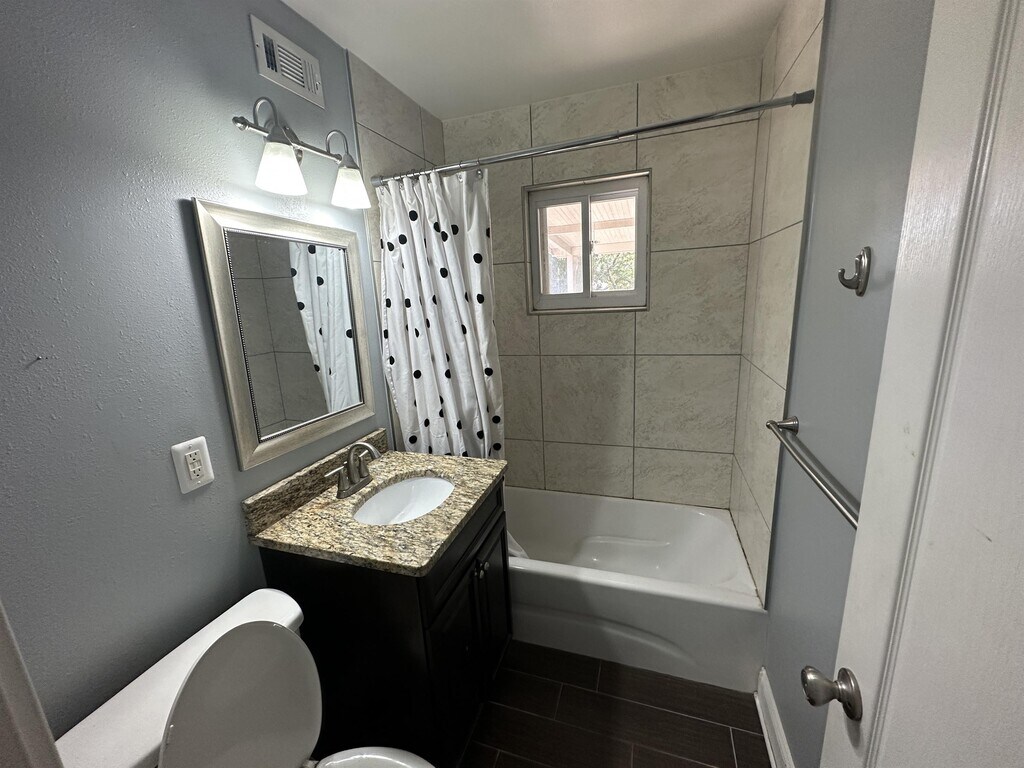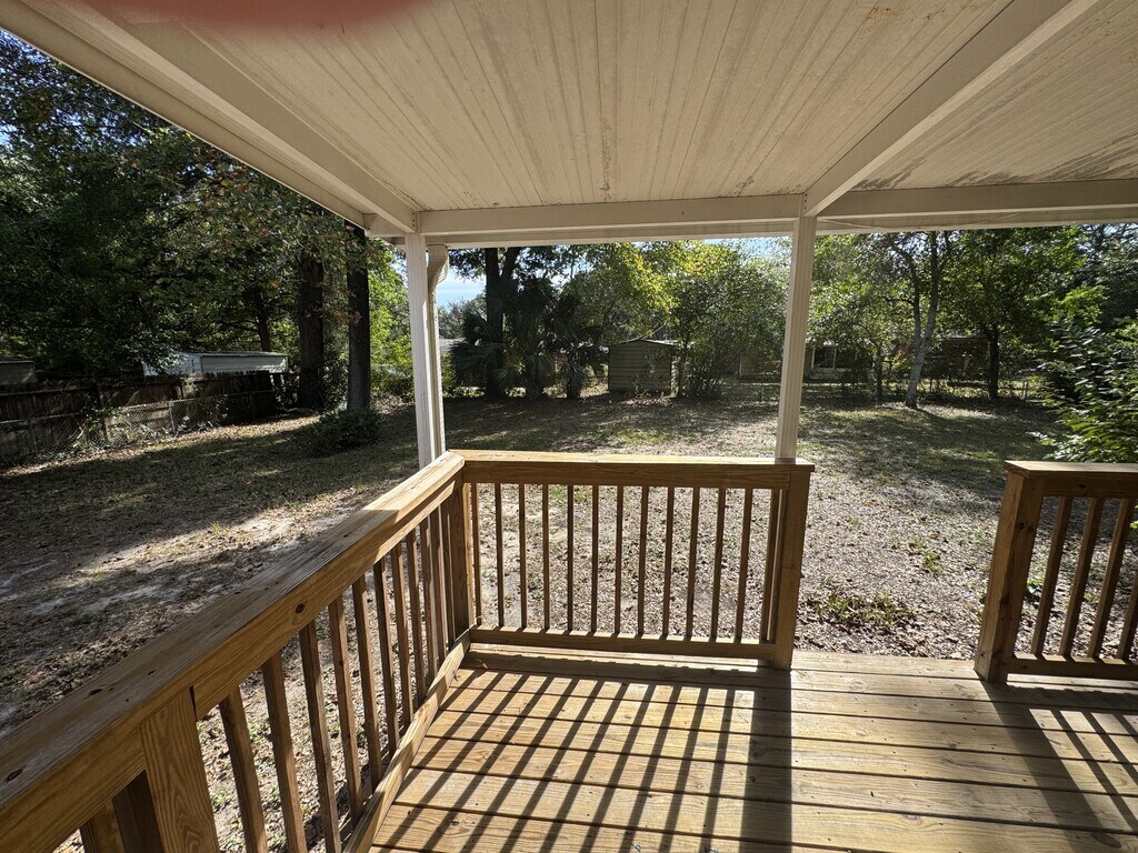 Available November 1st... Just 1 mile from the Eglin AFB North gate. 3 bedroom, 2 bath brick ranch house with plenty of upgrades! This home features newly refinished hardwood floors as well as tile flooring throughout, Freshly Painted, and plenty of space! The kitchen has been upgraded with granite counter tops, stainless appliances, and flat cooktop stove. From the dining room, double doors lead out to a covered back deck overlooking the large back yard. A sunken den could be utilized as additional living, dining, office, or flex space. The laundry room is huge and connects to an unfinished fourth bedroom (currently utilized as storage). The master bedroom has an en suite with double vanities and a tiled shower, and the two guest bedrooms share a full guest bath. Pets may be considered on a case-by-case basis with prior owner approval and a non-refundable pet fee. No smoking, including vapes. Washer/Dryer included and convey as is.