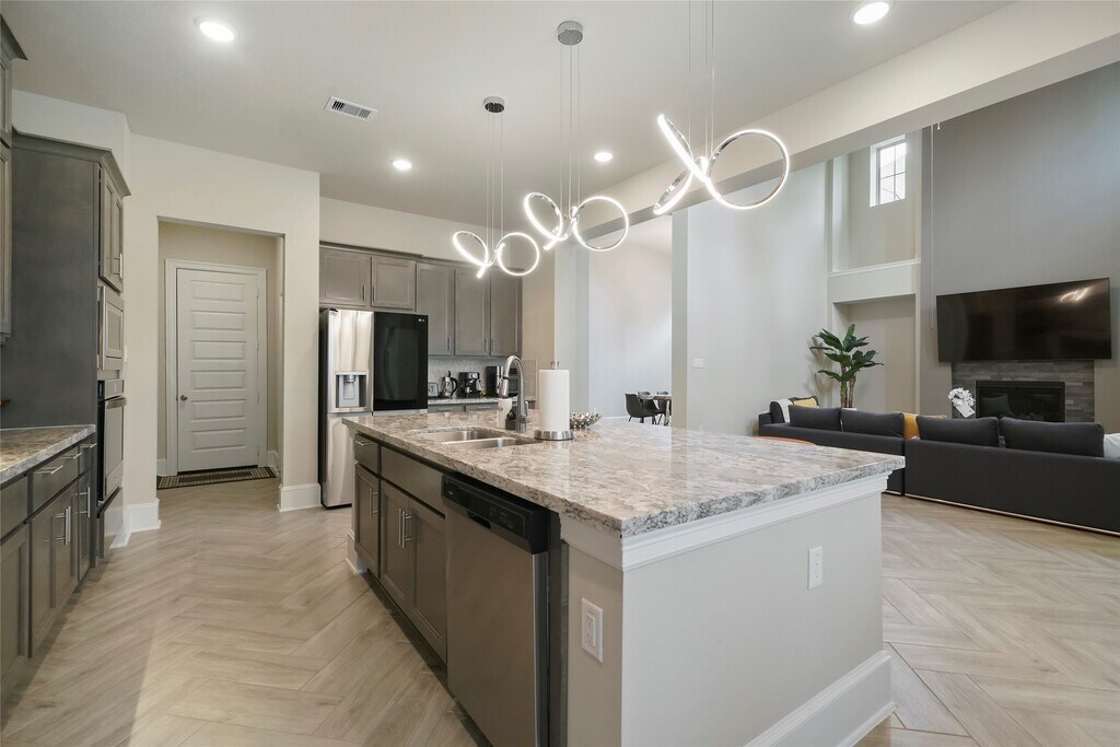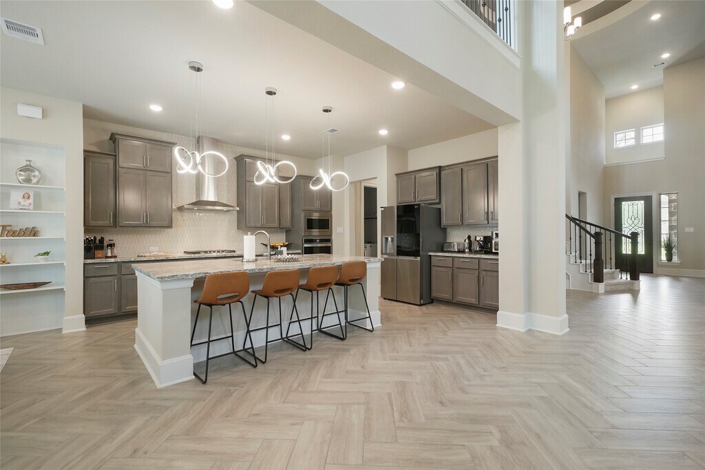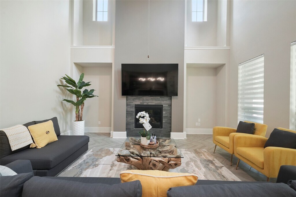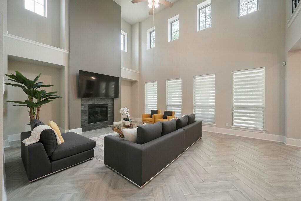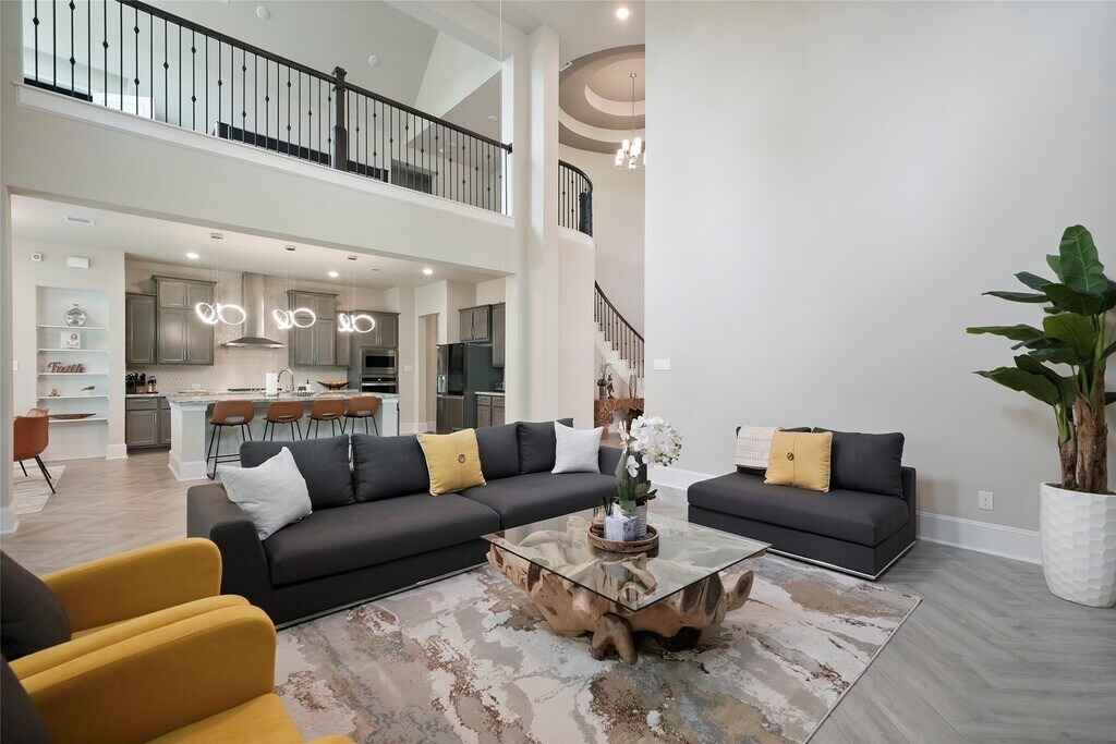This home comes fully furnished. New smart home in a brand new community by the lake and on a cul- de-sac lot! This exquisite house exhibits a beautiful design & stunning curb appeal. Enter through the beautiful 8ft entry door & you'll notice the architectural details that set this home apart. Study w/8ft double doors; Dining w/deluxe crown moldings; breathtaking tiered rotunda w/wrought iron curved staircase that will leave you & your guests "wowed"! Upgrades include luxurious 24x8in herringbone floors,8ft Doors & 8in Base trim which all add to the true custom feel. Your dream open kitchen has stainless appliances,quality cabinetry & a Texas-size island. Upstairs features a large GameRoom,high ceilings,a private surround sound wired Cinema,& secondary bedrooms. A masterpiece of a home w/ large covered patio & 3 car tandem garage. Located in the most convenient location of Grand Central Park between The Woodlands & Lake Conroe. MLS# 94437922