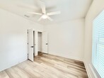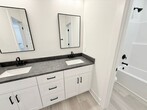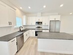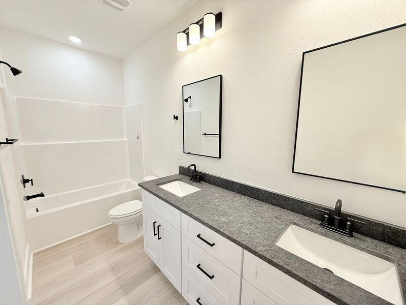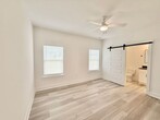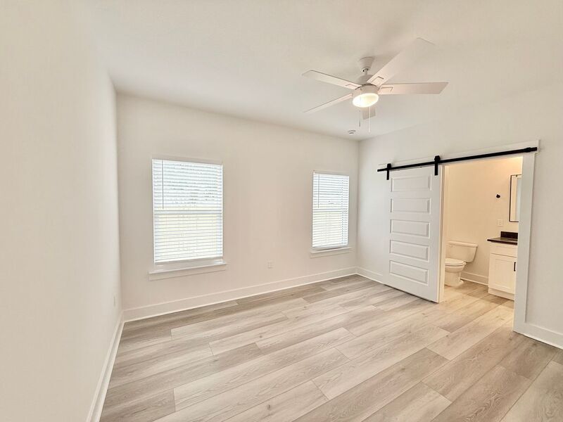 View In 3D: This beautifully designed 3-bedroom, 2 bath home offers 1,523 square feet of open-concept living space with luxury vinyl plank flooring throughout. The spacious eat-in kitchen is the heart of the home, featuring a center island with hop-up bar, ample white cabinetry, elegant subway tile backsplash, deep-basin undermount sink, and stainless steel appliances including a large refrigerator, glass-top stove/oven, built-in microwave, and dishwasher. The open layout flows seamlessly into the main living area, making it perfect for entertaining or everyday living. The primary suite includes a private ensuite bathroom with a stylish barn door entry, dual vanities, and a tub/shower combo. Two additional bedrooms share a second full bath, also featuring dual vanities and a tub/shower combo. Additional highlights include a dedicated laundry room with space for a full-size washer and dryer, covered front and back porches, and a large fully-fenced backyard.