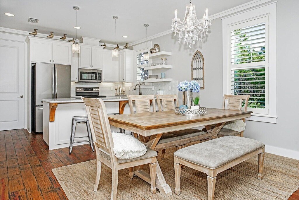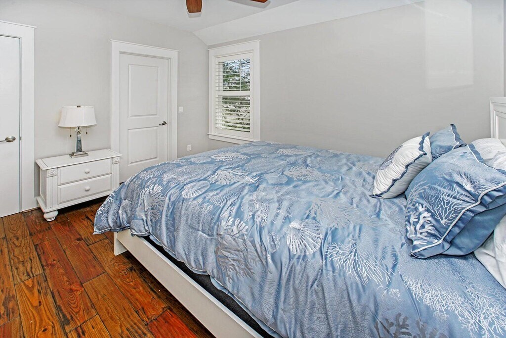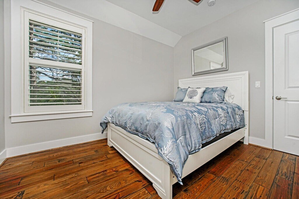 Minutes to the Beach. This beach cottage sits on a corner lot with plenty of room for a back yard accent pool. It is being sold fully furnished and rental ready. Built in 2016 and meticulously maintained. The floor plan is open with modern coastal finishes and fresh upscale furniture. The main floor offers living, dining and kitchen as well as half bath, laundry and one master suite. The second floor offers another master suite with private porch along with 2 additional bedrooms and a shared bath. Special features include multiple porches, rear patio, a golf cart garage. The kitchen is ready to entertain with upscale counter tops and newer stainless steel appliances .Shadow Pines is a charming neighborhood with lighted streets, private community pool.