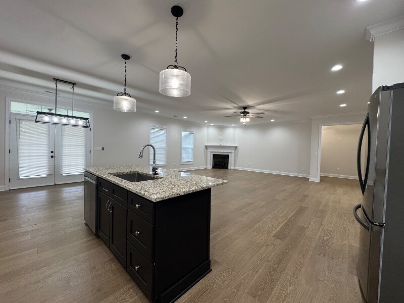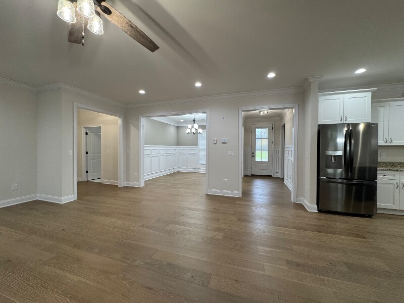 Property Id: 2250446 Discover exceptional living in one of Rineyville’s most desirable, military-friendly communities just minutes from Fort Knox. This upgraded home offers luxury and comfort with an open layout, custom millwork, engineered hardwood floors, designer lighting, and a cozy fireplace. The spacious great room connects to a chef-inspired kitchen featuring custom cabinets, granite countertops, a large island, pantry, and full stainless appliance package. The primary suite includes tall ceilings, a dual-sink vanity, soaking tub, tiled walk-in shower, and oversized closet. Additional hardwood bedrooms offer high ceilings and ceiling fans. A formal dining room, tray ceilings, and split-bedroom design add convenience and privacy. Outside, enjoy a covered front porch, new privacy fence, manicured landscaping, and a covered back patio ideal for kids, pets, and entertaining. This move-in-ready Rineyville home delivers comfort, quality, and location.
