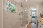Welcome to 119 N Kanaio Drive Unit B in Bastrop, TX, a beautifully updated duplex offering space, comfort, and modern style in a quiet, convenient neighborhood. Inside, you’ll find an open layout with laminate flooring downstairs and plush carpet upstairs, plus a bedroom and full bathroom on the main level — perfect for guests or a home office. The primary suite has been thoughtfully upgraded with a brand-new walk-in shower featuring a rain shower head, sitting area, and handheld sprayer, creating a spa-like experience right at home. Enjoy the shade and serenity of the large, tree-covered backyard, with all mowing of the front and back yard included in rent for easy living. Additional features include a two-car garage, spacious layout, and modern finishes throughout. One small pet is allowed with approval. To make your move even more inviting, we’re offering a two-week free move-in incentive for qualified tenants. Conveniently located near local schools, shopping, and major highways, this home combines style, comfort, and low-maintenance living — come see why it’s one of Bastrop’s best leasing opportunities today!