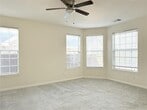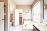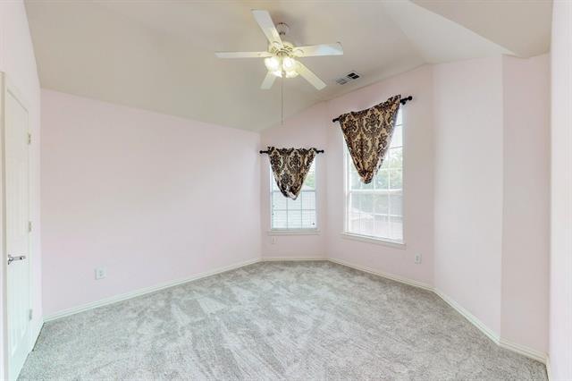 Wonderful home in a great neighborhood. Property backs to a greenbelt offering a peaceful setting. Tons of recent upgrades including new carpet, new interior paint, new faucets, new HVAC and new water heater. Downstairs offers a large entry room that could serve many purposes: additional living, dining, game room, office, craft room, music room, the list goes on. Enjoy a private master suite downstairs, with spa like bath including double vanity, large garden tub, and separate shower with new shower head. There is an updated half bath downstairs for your guests to enjoy. Kitchen comes with SS appliances including a side by side refrigerator. Large kitchen island perfect for entertaining. Washer and dryer in the utility room are provided. Upstairs has a great homework desk for the students in the family, with a nearby balcony overlooking downstairs living and kitchen (just in case your student has a homework question for you). Three additional bedrooms upstairs and a full bath with double sinks. Home is ready for immediate move in.