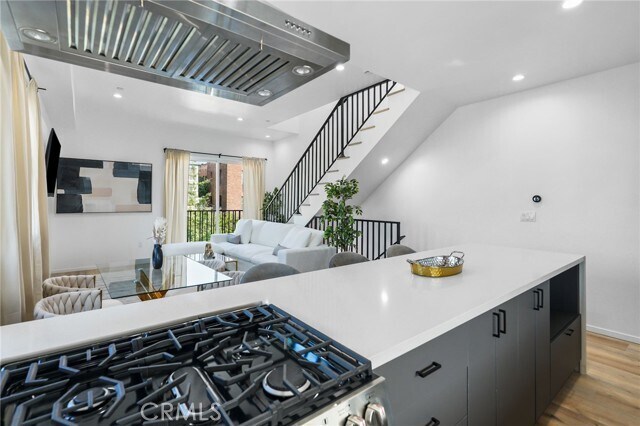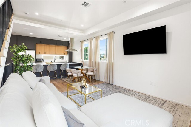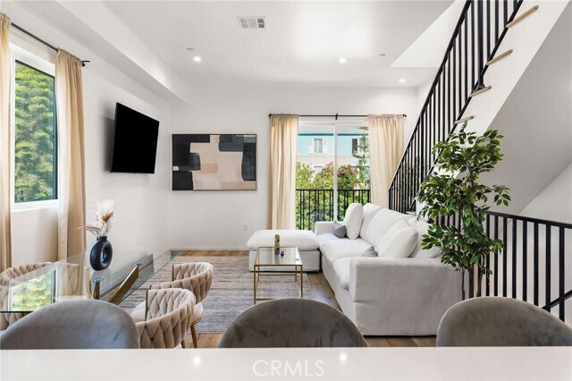 OFFERING ONE MONTH FREE ON A SIGNED 13 MONTH LEASE!!! Standing three stories over a celebrated neighborhood in Ramparts Village, this ambitious 1,353 sq ft home is the quintessential Modern Residence. Delivering the utmost in luxury and exclusivity, this three-bedroom, two bath Townhome gazing out across the dazzling Hollywood landscape presents a rare new construction homeownership opportunity. A truly astonishing accomplishment of engineering and architecture, the open-plan layout blends premium craftsmanship with exceptional finishes.Exhibiting a stunningly executed design, every inch of this sumptuous space has been meticulously crafted for sophisticated living. Dominated by khaki-hued hardwood floors and crowned by elevated ceilings with integrated lighting, the elegant living room and dining room are vibrant entertaining venues. Rich in high-end finishes and fixtures, the kitchen is a first-class workspace. Characterized by a superior standard of quality, no expense was spared to achieve this epicurean’s delight. Amenities include chic matte cabinetry, professional series appliances, waterfall island and double pantry. Complemented by a beautifully appointed bath, the primary suite dominates the lower level. Outstanding accommodations continue in the additional guest rooms, which can efficiently function as home offices or fitness areas. A full-width roof deck is positioned to capture miles of twinkling L.A. lights. Bike storage, a rock garden, secure parking and keyless entry provide the finishing touches. The enviable location takes full advantage of its proximity to thriving business and cultural scenes in adjacent Silverlake, Koreatown, and Westlake. Dodger Stadium and L.A Live can be reached in 10 minutes, while upscales boutiques along The Grove's promenade are just a 19 minute commute. MLS# SR25220437