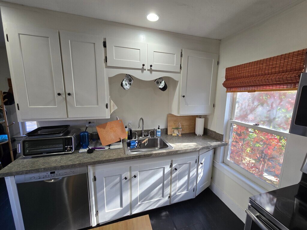 This much living space, storage, and three off street parking spaces including a garage this close to downtown is an unbelievable value! HEAT, WATER, SEWER, TRASH, AND LANDSCAPING ARE INCLUDED. This updated one bedroom rental is bursting with natural light and all the classic New England charm. You not only get the entire second floor to yourself and a private entrance, but also bonus storage space on the third floor. The bedroom can comfortably fit a king size bed, dresser, and so much more. Spacious living room comfortably fits you and all your guests. The modern kitchen, which includes stainless steel appliances and dishwasher, is large enough for a table and/or island so cooking is a breeze. There's also bonus space that could be used as a dining room, home office, or hobby space. In unit laundry provided. NO PETS! NO SMOKING! First month rent and security deposit due at lease signing. 6 month lease. Full background, credit, and eviction history check required. Tenant is responsible for electric, internet/cable, and clearing snow from driveway. Unit comes unfurnished. Available 12/1/25 with flexible move in date MLS# 5068464