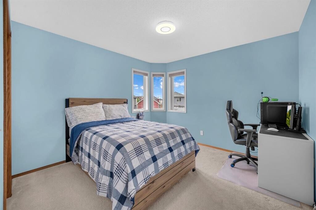 Welcome to this charming and tastefully upgraded Two Storey (Upper Level) 4 Bedroom, 2.5 Bath home, conveniently located near the Genesis Centre, YMCA, Schools, Shopping and Public transportation. Throughout the main level, there is a gorgeous laminate floor, knockdown ceiling, pot lights, and large windows that let in a ton of natural light, a spacious family room with a gas fireplace, creating a cozy spot to hang out with family or friends, two-piece powder room and a main floor office has the outlets to set up main floor laundry. The gourmet kitchen is a chef's dream, complete with Premium KitchenAid Appliances, ample cabinetry, a corner pantry, an island with a farmhouse sink, quartz countertops, and backsplash tiles that flows into the breakfast nook. Adjacent, sun-soaked south-facing patio doors lead to a low-maintenance south-facing deck, offering views of the beautifully landscaped, large Pie Shaped backyard. The bright upper level, featuring a skylight, boasts FOUR Spacious bedrooms. The primary bedroom serves as a peaceful retreat, complete with a walk-in closet and private ensuite. Three additional bedrooms and a full bathroom upstairs provide ample space for family or guests.