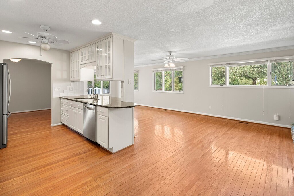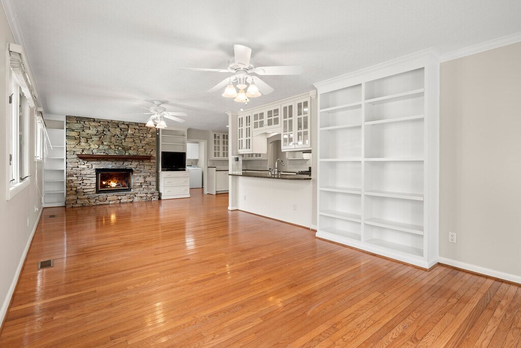 Inviting and lovingly maintained Mills River house offering so much room, all on one level! Situated in a small neighborhood with a field bordering the backyard and serene pasture and distant mountain views. Access the spacious covered back porch from the living room, which has plentiful windows, an electric fireplace, and built-in shelving. The den is open with the kitchen and features a gas fireplace with a stacked stone surround. The kitchen has been upgraded with granite counters and nice appliances including the gas range, French door refrigerator, and dishwasher, and the formal dining room will accommodate a large dining set. Laundry, a big pantry, and the powder room are near the kitchen. The existing washer and dryer will remain for tenant use but will not be repaired or replaced by the homeowner. Bedrooms are accessed from the hall off of the home’s entry foyer. To the right, the primary bedroom is a true retreat with an attached sitting room, large bathroom, and walk-in closet. The spacious en suite bathroom has a claw foot tub, penny tile floors, and spa-worthy wallpaper. To the left are the remaining two bedrooms and the full hall bathroom that includes a combined shower/ bathtub. Attractive hardwood and tile flooring, ceiling fans, and nice window treatments are throughout. Central heat and air conditioning - all electric. Propane fuels the range and gas fireplace, only. Tenant responsible for all utilities, including electricity, trash collection, propane, and water/sewer. Attached two-car garage. Landscaping maintenance and mowing of grassy areas are tenant responsibilities. No cosigners. No smoking. One small dog (25 lb or less) is negotiable.