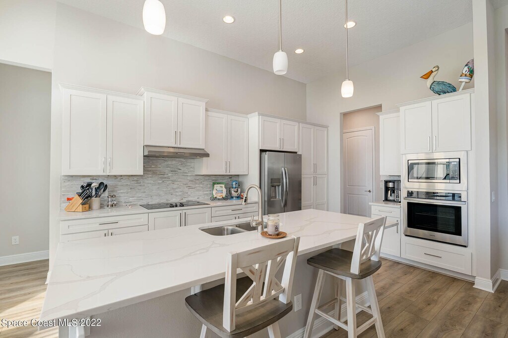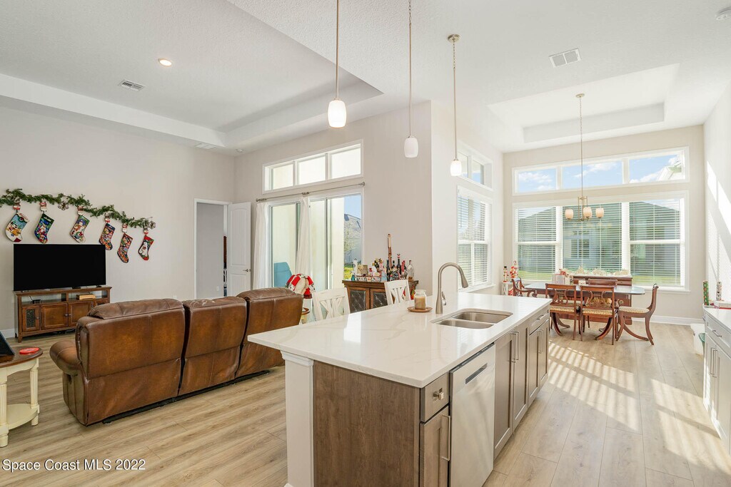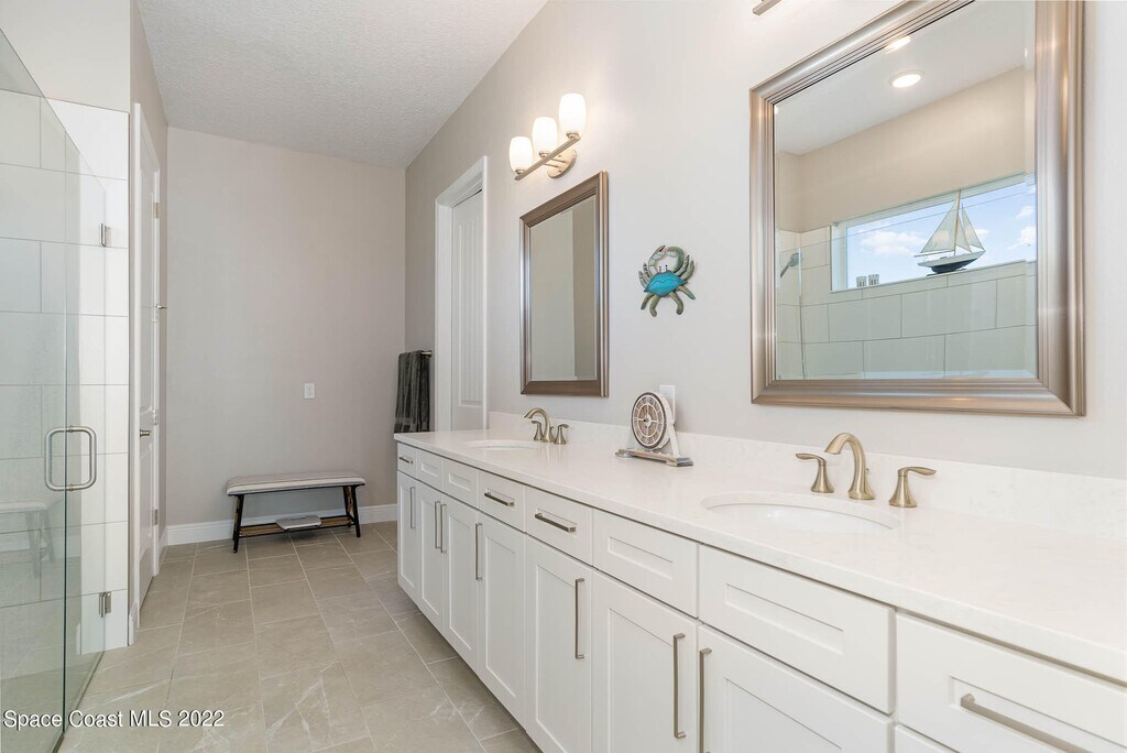 Celebrate luxurious living,close to the river! This beauty is located in the gated Georgiana Reserve Subdivision,steps from the Indian River & full of high-end features! Punctuated w/luxury vinyl floors & crowned w/tray ceilings,this modern abode is wide-open & infused w/natural light. Entertain in a generous great rm w/formal & casual dining areas. At the center,a marbled quartz island kitchen with SS appliances,a wall oven,crisp white cabinetry & walk-in pantry. The master has dual granite sinks,a large subway tiled shower w/bench seating & a big walk-in closet w/personal entry to the laundry rm. 1 of the extra bdrms provides an attached bath. A breezy covered lanai overlooks the sizable backyard. Attention boat lovers! Across the street is the path to the community's riverside dock. You can also relax as you gaze out at the glistening neighborhood lake & enjoy staying active on the nature trail!