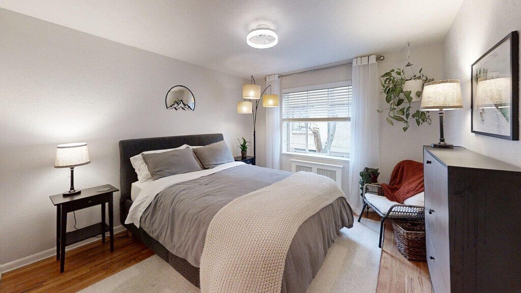 This beautifully fully-furnished first-floor condo offers comfort, convenience, and charm in a prime location with dedicated parking included. Nestled in one of Denver's most desirable areas, this boutique condominium is surrounded by tree-lined streets and well-kept homes of the Hale / Mayfair neighborhood. Local cafes, restaurants, and essential shops are all just a short stroll away. Parks and green spaces add a sense of calm, while the neighborhood walkable design keeps everything within easy reach. It's a welcoming place that feels peaceful yet connected to the best of the city. This property is ideally situated within minutes of four major hospitals, including Rose Medical Center, National Jewish Health, St. Joseph Hospital and Presbyterian St. Lukes, making it a perfect fit for traveling healthcare professionals. Easy access to major highways like Colorado Boulevard and I-70 keeps your commute smooth and convenient. Cherry Creek Shopping District and City Park are close by for relaxation and dining. With local grocery stores, gyms, and cafes within walking distance, everything you need is right around the corner. Perfectly sized, this one-bedroom, one-bath home was thoughtfully designed for effortless daily living in an open and spacious floor plan. The living room features a cozy three-seat sofa with an ottoman, a clever lift-top coffee table for dining or working from the couch, and a small bookshelf for personal touches. Natural light pours in from the window, complemented by a cool window A/C unit that keeps the space pleasant throughout the warmer months. The adjoining dining area offers a fold-down table with two chairs, ideal for a quiet meal or a productive work session. The fully equipped kitchen is complete with new stainless steel appliances, generous cabinetry, and all essential cookware and utensils, making meal preparation both easy and enjoyable. The bedroom offers a restful retreat, with a queen-sized bed featuring built-in drawers, matching nightstands, a roomy closet with shelves, and a chair for reading or relaxing. A ceiling fan and bright window ensure both comfort and a cheerful atmosphere. The bathroom, recently updated, includes a tub-shower combo, single-sink vanity, well-lit mirror, plenty of storage, and this unit includes its own in-unit washer and dryer. Outdoors, the community courtyard offers a peaceful gazebo area, and the building backs to Lindsley Park featuring tennis courts, a playground, a baseball diamond, and a scenic walking path. Priced for a January 2026 Start w/ minimum 6 month term. - Application (History of Credit, Criminal, & Eviction), plus Income / Employment documents and Landlord references. - 1st & last month rent plus deposit minimum. - Measurements and dimensions displayed are approximate. - No Roommates. - Pets conditional with Landlord/HOA approval and additional deposit, rent, and fees. HOA Pet Rules applicable. - A no smoking property. - $150 of combined Base Utilities Included (Denver Water, Xcel Energy), and Solid Waste & Recycling (Denver City Services), HOA. - APPLICATION NOTES: Application Link Provided By Request after viewing, and is emailed to all occupants 18+ years of age. Final lease terms will be agreed to after the owners review of your completed application (income/employment, credit and rental history, criminal background check, etc). Tenant application does not guarantee acceptance by Landlord. Application fees (if any) are charged by a third party for each adult occupant and are not refundable by Landlord or its agents. A Prospective Tenant has the right to provide to Landlord a Portable Tenant Screening Report as defined in Section 38-12-902 (2.5), Colorado Revised Statutes. LIC 2025-BFN-0023133