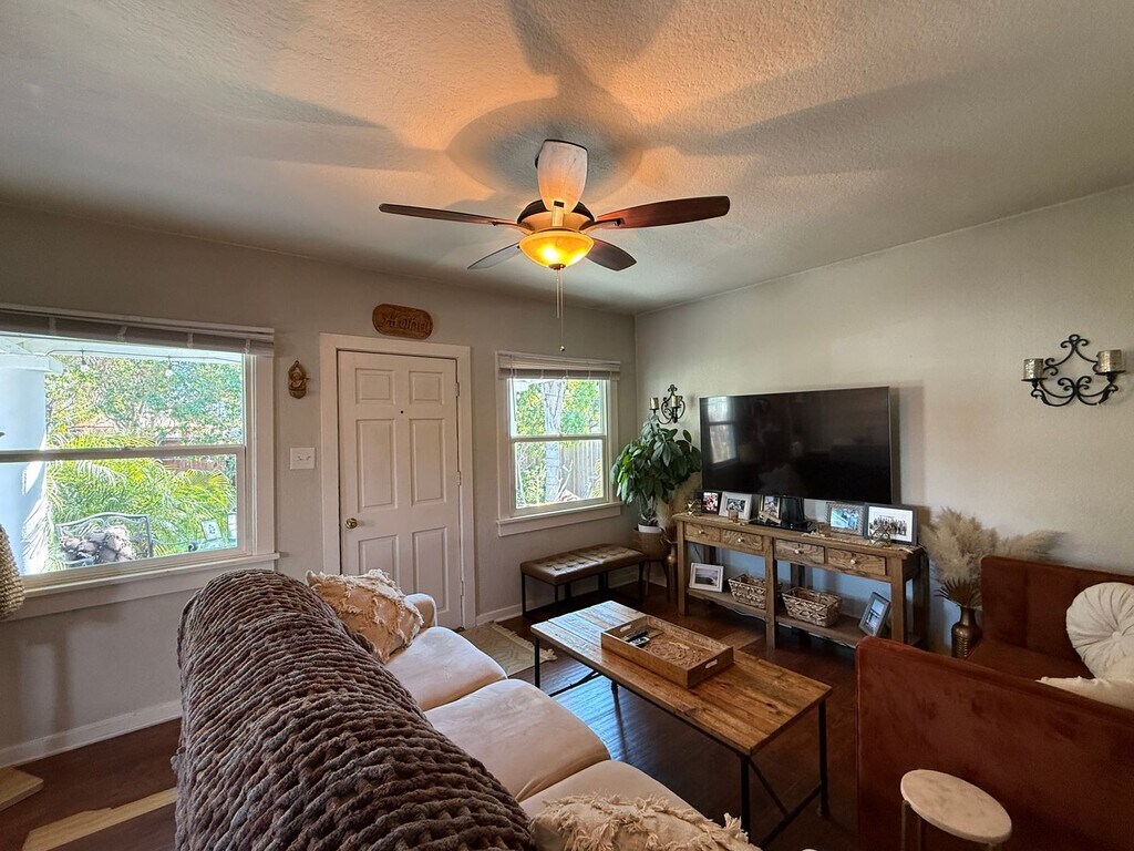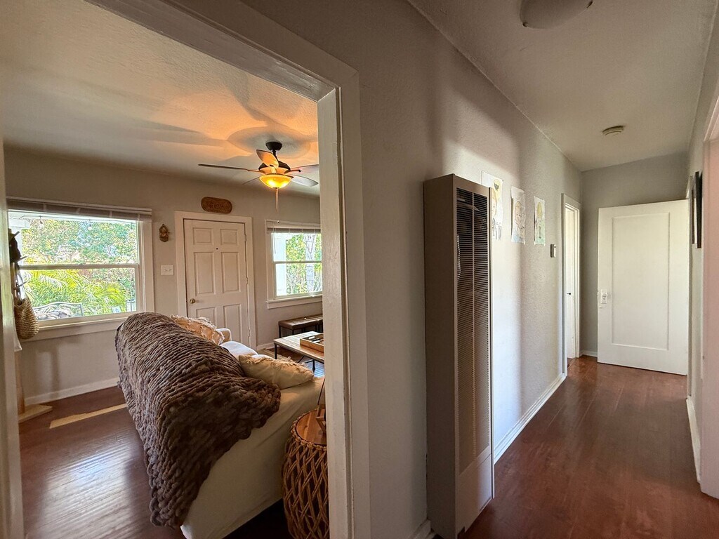 Experience Carlsbad at its best, with this Historic 940 sqft 3br-1B home! This little piece of paradise is located just off the I5 freeway and across the street from Carlsbad’s iconic Holiday Park. This home features spacious front and back yards with an electric gate for privacy and convenience. This location is on the fringe of the Carlsbad Village within walking distance from the beaches and linked with the Carlsbad school district. Both yards are professionally maintained by a gardening service providing a relaxed and private setting for outdoor entertainment. This home exudes an undeniable beach vibe with wood vinyl flooring throughout the living area. The bathroom, laundry-room and kitchen have new tile flooring that blends with the wood vinyl flooring and makes for a clean and casual design appeal. A total of 16 windows provide an abundance of natural lighting, with ceiling fans that help to circulate the Carlsbad offshore breezes. The kitchen features a gas cooktop, fridge, microwave oven and ceiling can lights and crown molding. The laundry room is adjacent to the kitchen and provides a view of the backyard and includes washer/dryer units. This One-Of-A-Kind property is located in San Diego’s finest city and being offered at $3,950/MO on a 12-month lease with long-term tenancy encouraged. Contact Jim Scanlon at Scanlon Realty Management, Inc. at to schedule a private viewing of this lovely Carlsbad home. CalBRE 01950837