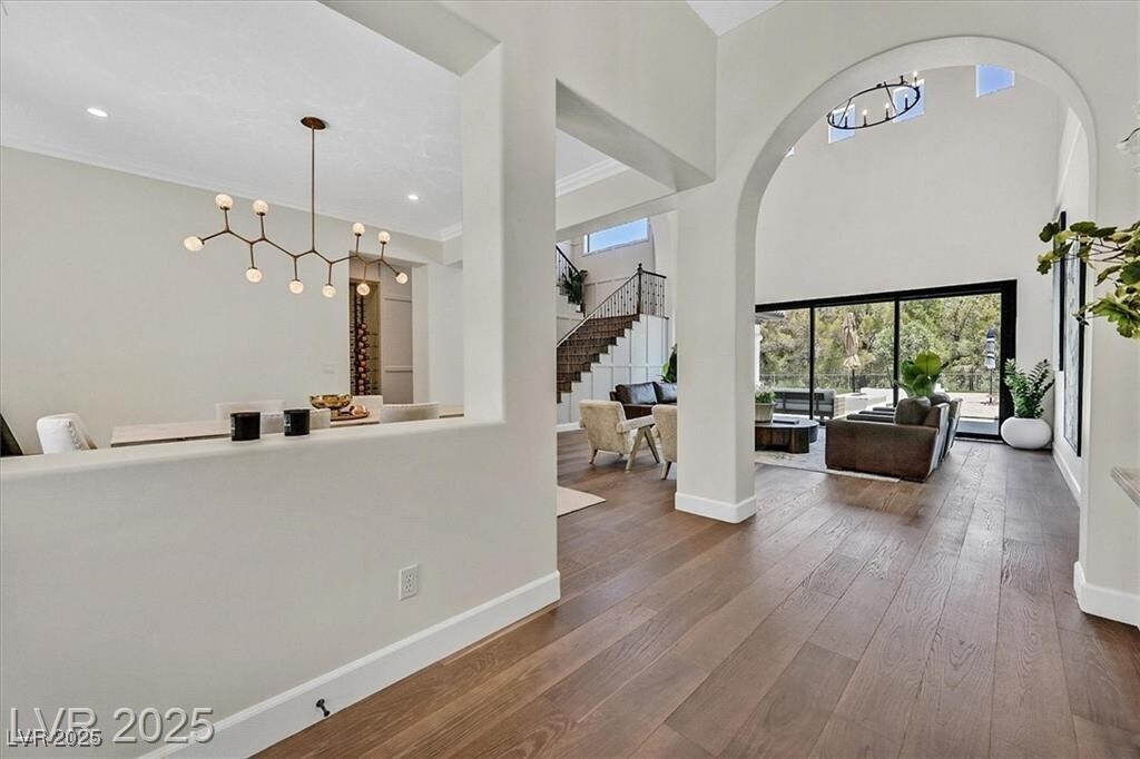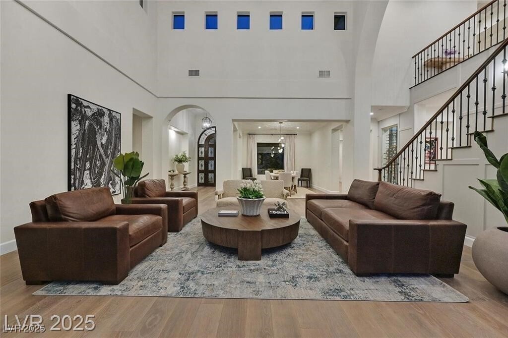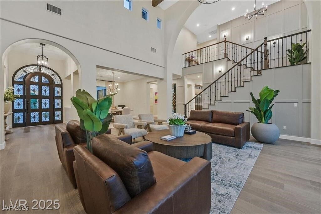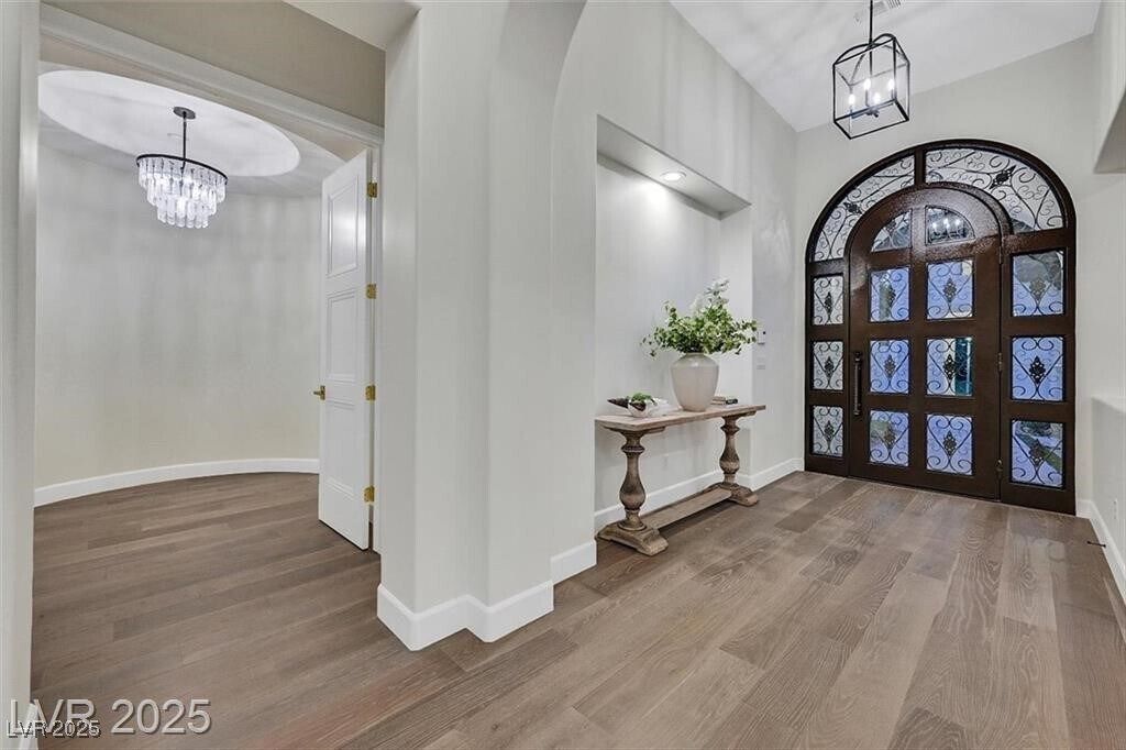 GORGEOUS 2 STORY IN SOUTHERN HIGHLANDS PRESTIGIOUS GOLF COURSE COMMUNITY. THIS INCREDIBLE RENOIR MODEL IS ON .34 ACRES, HOLE#6. BRIGHT & OPEN PLAN COMPRISED OF 4 BEDROOMS, 6 BATHS, 4 CAR GARAGE, DEN, FORMAL LIVING, DINING, GLASS WINE ROOM & MODERN INTERIOR FEATURES. SECURED COURTYARD ENTRY W/ CUSTOM IRON DOOR, 22 FOOT CEILINGS, WALL PANEL STAIRCASE WITH PICTURE WINDOW, NEW PAINT INSIDE & OUT, ENGINEERED HARDWOOD FLOOR & CUSTOM LIGHTING. CHEF’S KITCHEN IS EQUIPPED W/ TOP OF THE LINE SS APPLIANCES, WINE FRIDGE, EXPANSIVE QUARTZ ISLAND W/ 6 BURNER COOKTOP, CUSTOM CABINETS, WALK-IN PANTRY & GARDEN WINDOW. FAMILY ROOM INCLUDES MODERN FIREPLACE & SLIDING GLASS DOORS TO CAPTURE GOLF COURSE VIEWS. OUTDOOR KITCHEN, FIREPIT, NEWLY DESIGNED SPARKLING POOL & MORE. INDOOR OUTDOOR LIVING AT ITS FINEST. PRIMARY SUITE ON MAIN LEVEL WITH CUSTOM WALK-IN CLOSETS & REDESIGNED SPA-LIKE BATH, HUGE SHOWER, SOAKING TUB & DUAL VANITIES. STUNNING REMODEL W/ OVER 4,700 SQUARE FEET OF MODERN LIVING & UPGRADES