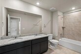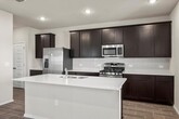 This spacious five-bedroom, three-bathroom home offers just over 2,700 square feet of thoughtfully designed living space, providing everything you need in an exceptional location. Showcasing our elegant Diamond Design Package, this Eisenhower model features dark-stained cabinetry, wood-look tile flooring, an upgraded backsplash, and sleek quartz countertops, blending style and functionality throughout. Perfectly positioned just one block from the community pool and amenities, the home enjoys a prime location at the heart of the neighborhood, offering convenience, comfort, and a vibrant community lifestyle.