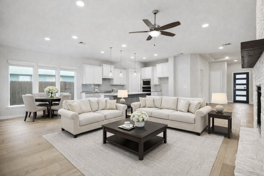 Amazing! Stunning One-Story Home NO BACK NEIGHBORS! Located inside a Beautiful Gated Community! Walking distance to the Lagoon! Extended grand entry welcomes you into this Gorgeous Home featuring elegant wood-like tile floors,high coffered ceilings,plantation shutters,custom light fixtures & remote-controlled window shades! Home office & formal dining/media room! Large family area with stone fireplace,wall of windows flowing into the Casual Dining & Gourmet Kitchen with Granite Countertops,eat in island,beautiful tall white shaker cabinets,undermount lighting,tile backsplash,stainless-steel built-in appliances! Private Primary Suite offers a Spa Style Bath with Double Sinks,Soaking Tub,Separate Shower & Walk-In Closet! Split bedrooms plan designed for comfort & privacy! Covered patio looking out to your large private backyard! Resort Style Amenities include Lagoon Access,Pool,Splash Pad,Fitness Center,Clubhouse,Jogging Trails,Playground & Sports Courts and many more! MLS# 55901253