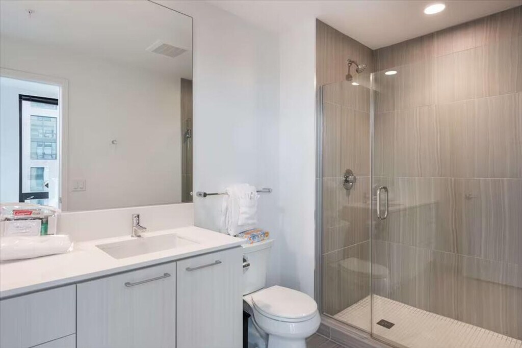 Find the best of city conveniences and suburban comfort at Reston Town Center. Set above the high-end shops and restaurants of this outdoor mall, this apartment is ideal for any trip to the D.C. area. With a fabulous location within walking distance of Reston’s top attractions, a spacious floor plan featuring huge windows and hardwood floors, and a gourmet kitchen with stainless steel appliances, you'll feel at home with luxurious hotel-like amenities. Welcome to friendly Reston, Virginia, a charming corner of the sprawling D.C. metro area known for the lively Reston Town Center. Perched just a stone’s throw from a slew of great restaurants, upscale shopping, and convenient essentials, this modern building has it all. Greet the beautiful D.C. day from your quiet, private bedroom. In addition to a plush mattress, you’ll find high-end wood furnishings, Quartz countertops, plenty of natural light, and ample closet space to really make you feel at home. Whether your days are filled with meetings, family visits, or tours of D.C.’s most popular attractions, you’ll undoubtedly work up an appetite. If a casual night at home is in the cards, take advantage of the stunning chef’s kitchen and whip up a delicious meal. The premium stainless steel appliances include a full-size fridge and freezer, electric stove, oven, microwave, and dishwasher, and the cabinets are fully stocked with the essentials. The kitchen, dining room, and living room blend together effortlessly, thanks to the open floor plan and sophisticated wood floors. Here, there’s plenty of room to relax, so kick back on the couch or stream your favorite show for the perfect night in. During the sunny D.C. summers, nothing beats a refreshing dip in the outdoor pool or a lazy day on the rooftop terrace. The building amenities offer plenty of on-site entertainment choices for any time of year, including a resident lounge, a productivity-inspiring business center, and a fitness center. You can also enjoy the rooftop terrace, outdoor pool with cabanas, serenity-filled courtyard, outdoor grilling and picnic area, outdoor fountains, fully landscaped patio, fitness center, yoga studio, lobby lounge with fireplace, demonstration kitchen, game room with pool table, shuffleboard, and foosball, resident lounge, business center, and meeting room. Experience suburban living at its finest, just a 10-minute drive from Washington Dulles Airport and a 30-minute drive from the heart of Washington, D.C. With the shops and restaurants of Reston Town Center at your doorstep, you’ll have all the conveniences of a big city within a few steps, plus the natural beauty of Lake Anne and Lake Fairfax Park at your fingertips. Guests have access to all amenities, unless subject to season or availability. Be aware of lobby and hallway floor repairs leading to both towers. The apartment includes high-speed wireless internet, making it easy to work from home. The building also features a business center and meeting room for added convenience. [SI]