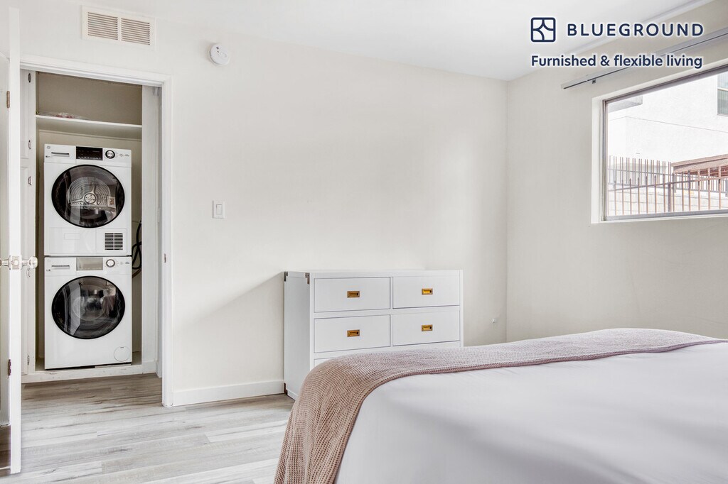 Feel at home wherever you choose to live with Blueground. You’ll love this charming Valley Village furnished two bedroom apartment with its modern decor, fully equipped kitchen, and cheery living room. Ideally located, you’re close to all the best that Los Angeles has to offer! (ID #LAX513) The advertised rate of $2,640/month is the lowest available price, based on a 5 month(s) and 28 day(s) stay with a move-in date of August 1, 2026. If you’re looking for a 1-year stay, the rate is $2,840/month. Rates vary depending on the duration of stay, season, and other parameters. For exact pricing and additional pricing components, please visit our website and enter your desired move-in and move-out dates. The rate is applicable when billed upfront; it can be higher if billed in multiple payments. Brokers are welcome to reach out. Were you looking for an unfurnished lease? Try Blueground instead and upgrade from unfurnished to furnished living: - Furnished at rates comparable to unfurnished - No setup or furniture costs - save thousands - Move-in ready - save time, just bring your suitcase Designed with you in mind Thoughtfully designed with bespoke finishes, modern furnishings, and a fully equipped kitchen, you’ll enjoy that “I’m home” feeling with this Blueground apartment. Whether you’re lounging in your stylish living room streaming the latest and greatest entertainment on the smart TV or premium wireless speaker, or getting some well-earned rest on the superior quality mattress with luxury linens, you’ll fall in love with everything this Valley Village apartment has to offer. This apartment also offers in-apartment laundry. Sleeping arrangements King Bed, 70.8in/180cm Queen Bed, 63in/160cm Amenities Building amenities unique to this two bedroom apartment include an on-site: - BBQ Area - Dryer - Swimming pool - Washing machine - Parking - Pets allowed Arrival and ongoing support The entire apartment is yours to enjoy! Throughout your stay, you’ll have access to our Client Experience team through the Blueground App. You can schedule additional cleanings, submit maintenance requests, and view our neighborhood recommendations with just a few taps. We’ll share all details upon confirmation of your stay. Ideally Located This furnished home is located in Valley Village, a sought-after neighborhood in Los Angeles's San Fernando Valley. Bordering North Hollywood, the area is home to walkable shopping, dining, and entertainment. It's easy to buy groceries and cook for yourself or head to neighborhood spots like Marie et Cie or Rustic Spoon for a delicious meal. Another neighborhood gem is Valley Village Park, a pocket-sized green space with a playground, a picnic area, and sports fields. Although Valley Village is walkable, most residents rely on cars to get around. Other things to note Building amenities may have an extra cost. This Blueground apartment has flexible lease options, allowing you to book it for one month, a year, or more. Pets are welcome, though weight limits and breed restrictions apply and may incur fees. Parking is offered based on availability and is subject to a fee. Please keep in mind that this is a walk up building. We take great pride in ensuring every photo displayed is shot in our own units with our actual furnishings. That said, we regularly refresh our decor and furniture arrangement, which may differ from what’s pictured. Also note - Ongoing construction in close proximity; construction sounds may occasionally be heard [SI]