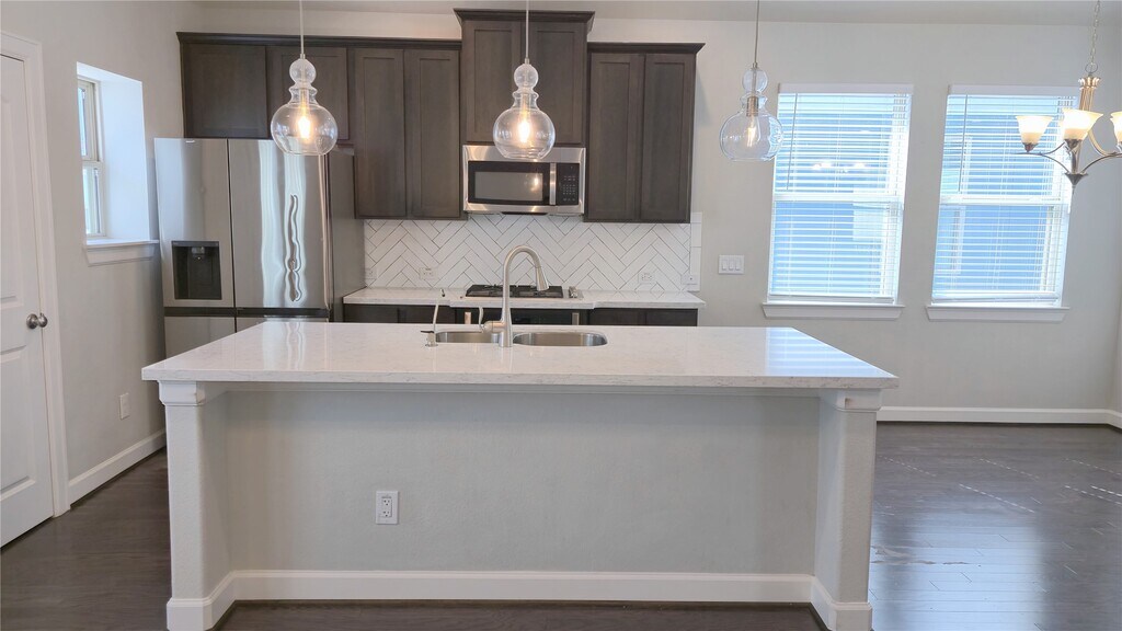Enjoy this well-maintained 2-story home with 3 bedrooms and 2.5 bathrooms,nestled in a quiet gated community! The spacious second-floor living area features an open-concept kitchen perfect for entertaining. Thoughtfully designed split floor plan offers the primary suite upstairs and two secondary bedrooms on the first floor. Beautiful engineered wood flooring in common areas and cozy carpet in bedrooms. Fantastic location with easy access to HWY 288 and just minutes from the Texas Medical Center. Current tenant will move out by end of Feb. MLS# 87948850