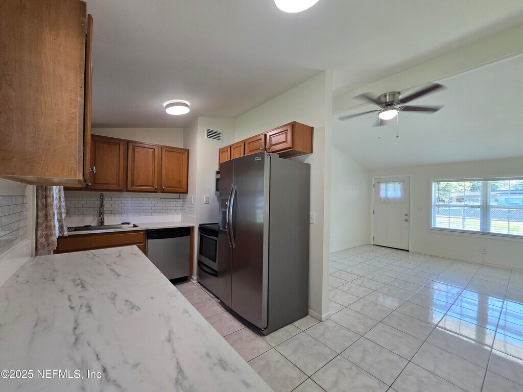 Welcome to this adorable three-bedroom,one-bathroom home located in the heart of the Intracoastal area,situated on a large lot. As you enter,you'll find tile and vinyl plank flooring throughout the home,providing a clean and modern feel. The well appointed kitchen features stainless steel appliances,making meal preparation a breeze. The home includes three comfortable bedrooms and a well-maintained bathroom. Additional amenities include a covered carport and an outdoor laundry room with a full-size washer and dryer included for your convenience. The large,fully fenced yard offers plenty of space for outdoor activities,and the backyard features a storage shed and a deck for added convenience. MLS# 2113723